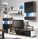 Ak máte menšiu obývaciu izbu, tento sektor je práve pre Vás. Vyskladáte si potrebnú obývaciu stenu podľa Vašich potrieb a predstáv. Korpus je vo farbe dreva dub sonoma alebo havana v kombinácii s bielou alebo čiernou. Fronty sú v bielom alebo čiernom lesku. K vitrínam máte možnosť si prikúpiť LED osvetlenie, ktoré navodí príjemnú atmosféru celému priestoru a efektne zvýrazní predmety umiestnené v nich. Celkový dizajn podtrhujú elegantné podlhovasté úchyty na otváranie skriniek.