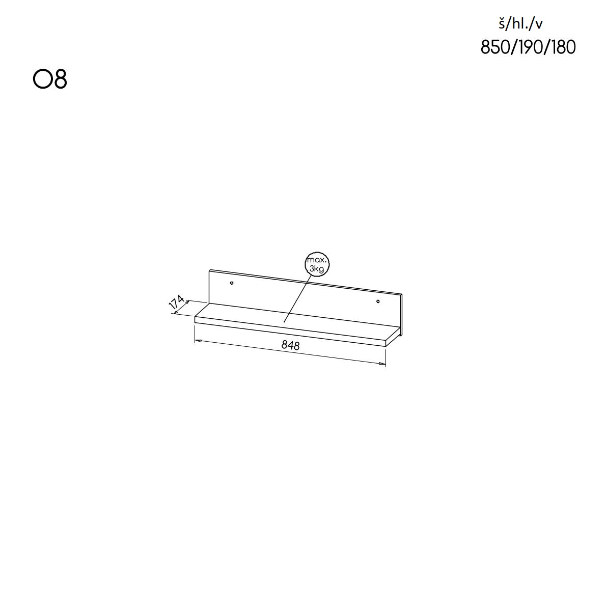 - Polička typ O8 Onley (lesklá biela + dub riva)