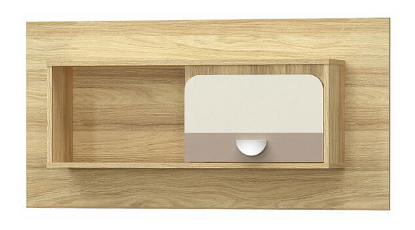 Praktický poličkový systém vhodný na zariadenie detskej alebo študentskej izby. Má otvorenú poličku a dvierka v pravej strane. Dvierka sa otvárajú pomocou polkruhového úchytu. Farebné prevedenie poličkového systému je dub jačmenný, champagne a cappucino.