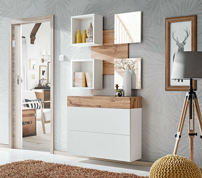Poličky so zrkadlom Elaine 20 WTW EY typ 07 (biela + dub wotan) je moderná a praktická zostava pre vašu predsieň. Zostava sa skladá z dvoch políc s rozmermi 100 cm x 20 cm a dvoch zrkadiel radu Easy typ 07. Farebná kombinácia biela a naturálny dub wotan dodáva vašej predsieni štýlový vzhľad. Poličky sú vyrobené z kvalitného materiálu, ktorý zaručuje ich trvanlivosť a funkčnosť. Sú ideálne na uskladnenie obuvi, kľúčov a rôznych drobností. Zrkadlá sú nevyhnutné pre posledný rýchly pohľad na vašu postavu pred odchodom z domu. Rozmery balíka č. 1 sú 72 cm x 64 cm x 11 cm a váži 24 kg. Poličky so zrkadlom Elaine 20 WTW EY typ 07 je skvelou voľbou pre každú modernú domácnosť, ktorá si potrpí na vkusný a praktický dizajn.