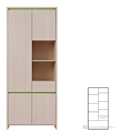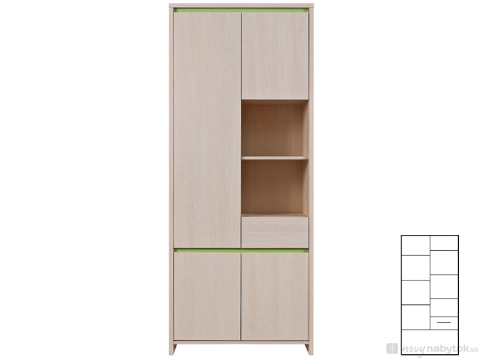 Štvordverová skriňa s otvoreným policovým priestorom.