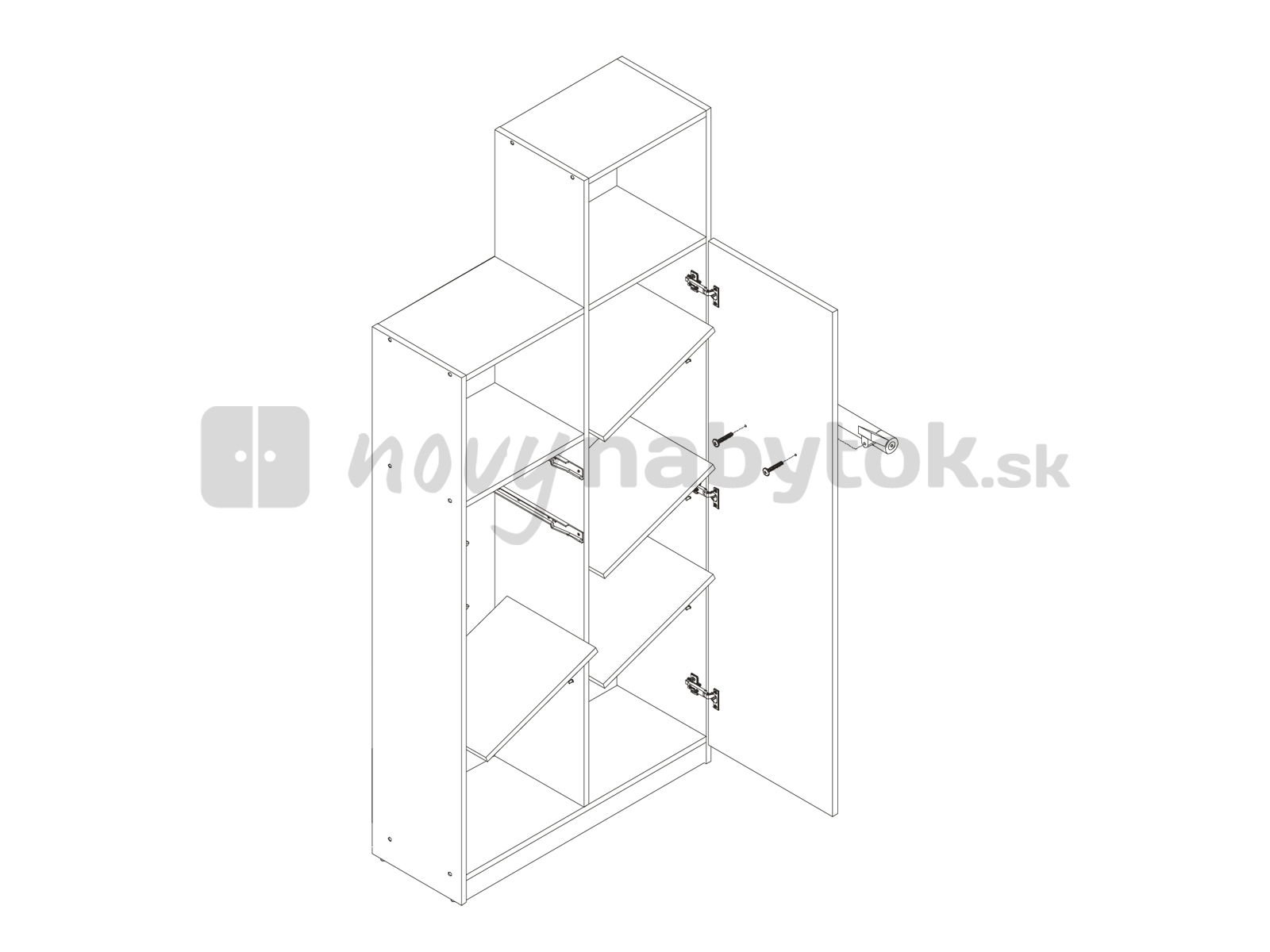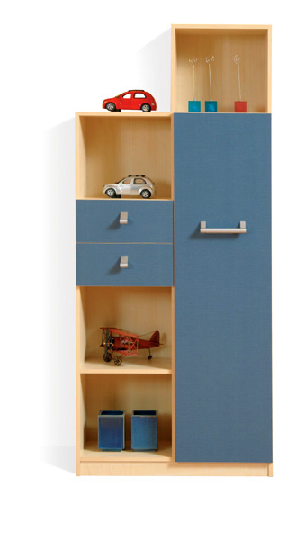 Mládežnícky komplet. V dvoch farebných prevedeniach: javor a javor / modrý. Písací stolík obsahuje hrubšiu pracovnú dosku. Jednoduché masívne úchytky v striebornej farbe.
