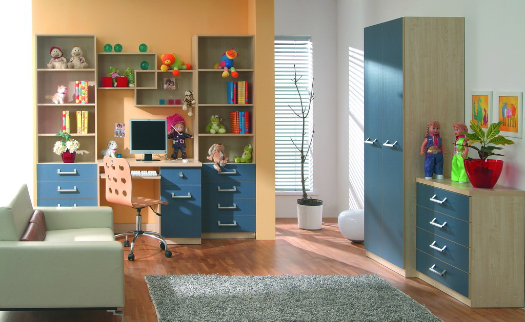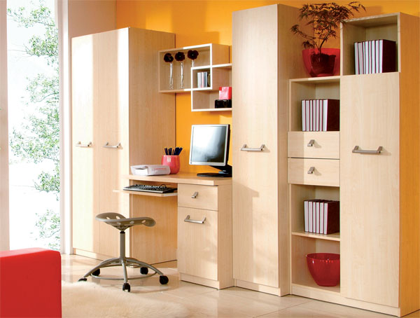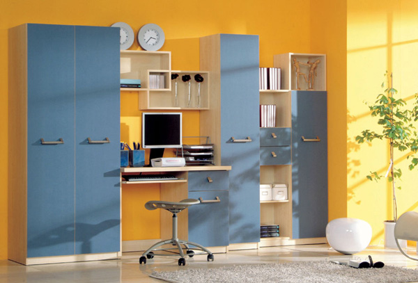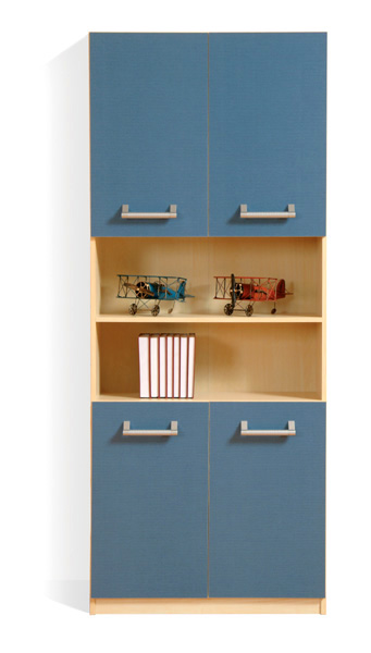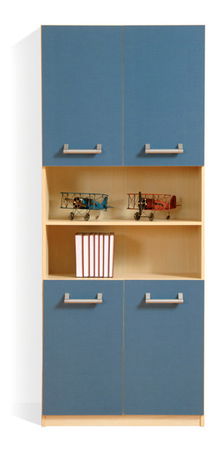 Mládežnícky komplet. V dvoch farebných prevedeniach: javor a javor / modrý. Písací stolík obsahuje hrubšiu pracovnú dosku. Jednoduché masívne úchytky v striebornej farbe.