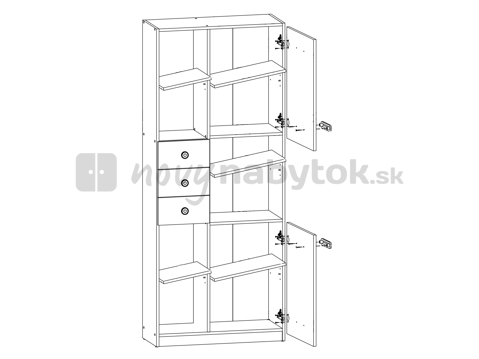 Študentská zostava. Nové prvky. Stolík s vysúvateľnou policou na klávesnicu a miesom pre PC. Dva druhy úchytiek a dve hĺbky prvkov. 13 prvkov vo 2 farebných prevedeniach.