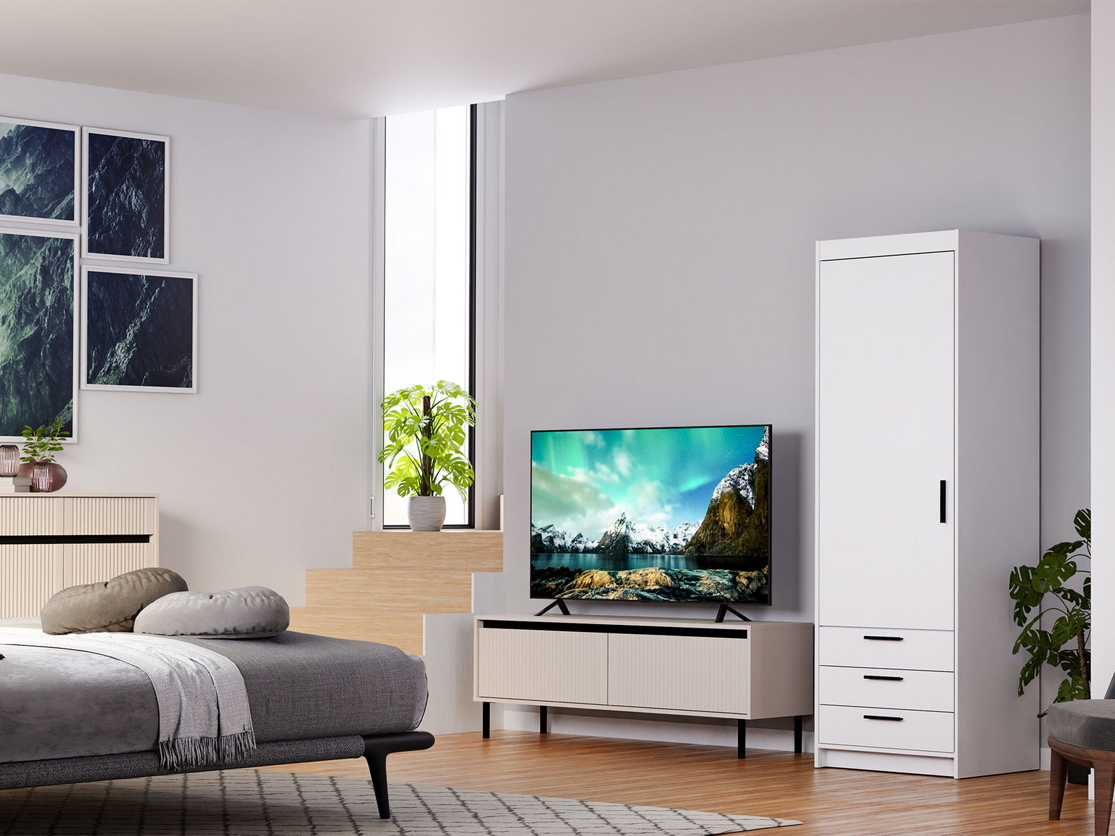 Policová skriňa Elanor III (biela) s výškou 190,5 cm a hĺbkou 53 cm je ideálnym doplnkom vášho šatníka alebo predsieni. Táto skriňa je dostupná v niekoľkých farebných prevedeniach, takže si môžete zvoliť tú, ktorá najlepšie zapadne do vášho interiéru. Úchyt skrine je vyrobený z kvalitného plastu, ktorý zabezpečuje pohodlné otváranie a zatváranie dverí. Korpus skrine je vyrobený z laminátu s bielou povrchovou úpravou a rovnako tak aj predná strana skrine. Celkovo je táto skriňa skvelou voľbou pre tých, ktorí hľadajú praktický a elegantný spôsob, ako usporiadať svoje oblečenie a doplnky.