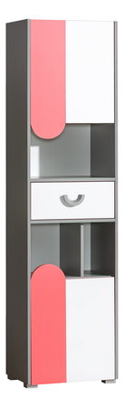 Užšia policová skriňa je ideálna hlavne do detskej izby na odkladnanie hračiek, kníh, učebníc alebo aj oblečenia. S modelovou radou Flumo môžete zariadiť kompletne celú detskú izbu. Nábytok je dostupný v troch farebných prevedeniach. Vyrobený je z laminovaných dosiek s ABS hranami.