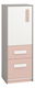 Úzka policová skriňa má v hornej časti štyri police a v dolnej jednu veľkú a jednu malú zásuvku.