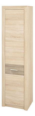 kolekcia vyrobená z laminovaných dosiek vo veľmi módnej farbe svetlého Dubu sonoma, ktorá bola spojená s ryhovanou MDF vložkou vo farbe Dub sonoma hľuzovka. Široké, zakrivené MDF rámčeky okolo tela zdôrazňujú to, čo je pre tento projekt najdôležitejšie - spoľahlivosť pri súčasnej jemnosti, ktorá sa osvedčí v každom interiéri domácnosti. Eleganciu pridáva nábytku trojbodové LED osvetlenie a úchyty v farbe šampanskej, predstavujúce ideálne dokončenie tejto rázu plnej kolekcie.