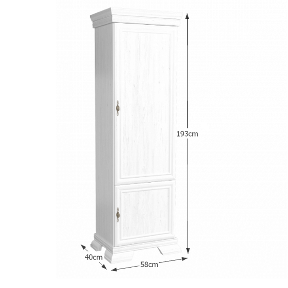 Policová skriňa Kraz KRD1 (sosna andersen) s výškou 193 cm a hĺbkou 40 cm je ideálnym doplnkom pre vašu obývačku, pracovňu alebo jedáleň. Skriňa má masívny vzhľad, vyrezávané nožičky a lišty a kovové úchyty na dvierkach. Je vyrobená z laminovanej DTD a laminovanej MDF, a jej farebné prevedenie je sosna andersen. Skriňa Kraz patrí do sektorovej modelovej rady nábytku, ktorý je ideálnym riešením pre tých, ktorí preferujú rustikálny štýl a tradičnejší vzhľad nábytku. Táto modelová rada nábytku sa vyznačuje masívnejším vzhľadom, elegantným tmavým prevedením Samoa king, ozdobnými lištami a kovovými úchyty. Rozmery skrine sú 58x40x193 cm, s hrúbkou materiálu korpusu 15 mm, vrchnej a dolnej dosky 22 mm. Výška spodného priestoru od podlahy je 10,5 cm. Skriňa Kraz KRD1 je ideálnym doplnkom pre každú miestnosť a skvelou voľbou pre tých, ktorí preferujú rustikálny štýl nábytku.
