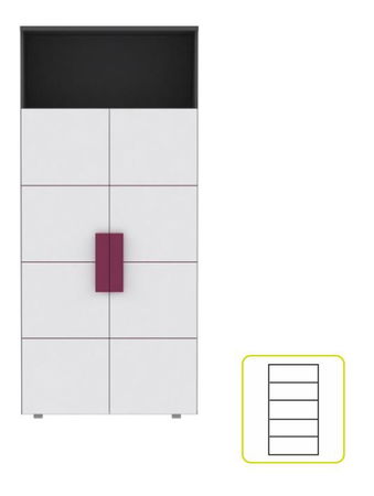 Mladí ľudia milujú farby a oveľa viac ako dospelí a radi si vyberajú pestré odtieňe. Rada Lobete je ideálne navrhnutá do študentských a detských izieb, vyrobená je z materálu DTD fóliovanej a dodávaná v prevedení korpusu v sivej farbe, frontov (dvierov a zásuviek) v bielej farbe a úchytov v odtieni fialovej.