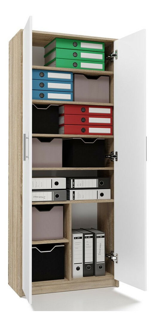 ZobraziťPolicová skriňa Obtenidas 1 v elegantnej kombinácii bielej a dubu sonoma je ideálnym riešením pre moderné interiéry. S ôsmimi praktickými policami a dvoma dverami ponúka dostatok úložného priestoru pre dokumenty, knihy či iné predmety, pričom minimalistická konštrukcia a čisté línie zabezpečujú nadčasový vzhľad. Vyrobená z kvalitnej laminovanej drevotriesky s ABS hranami, skriňa je odolná voči poškriabaniu a vlhkosti, čo zaručuje jej dlhú životnosť. Tento funkčný a estetický nábytok sa hodí do obývacej izby, detskej izby či kancelárie.