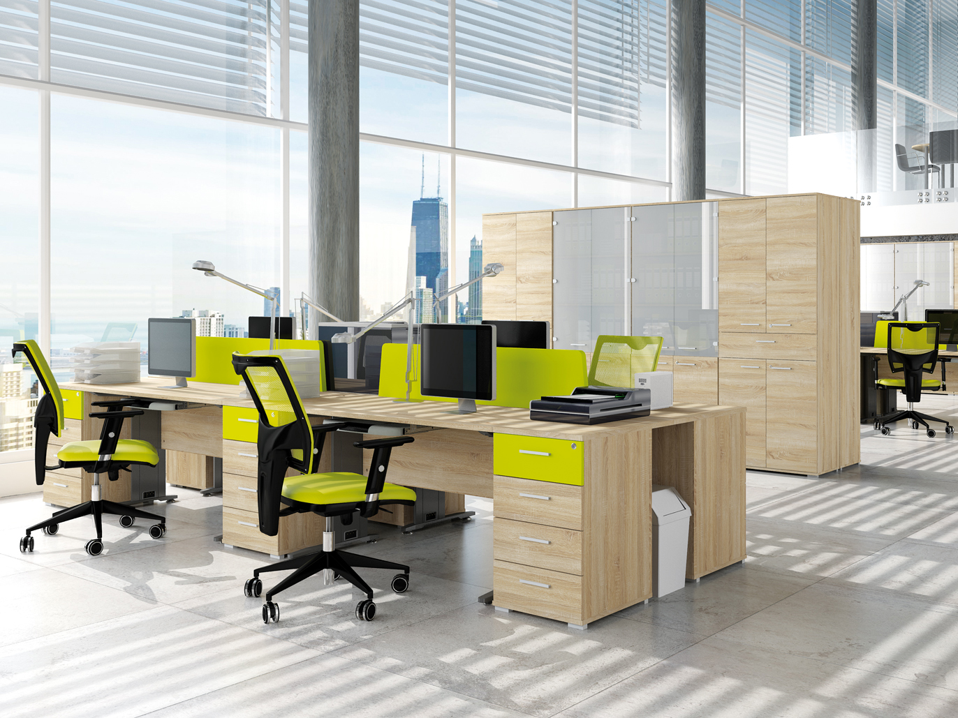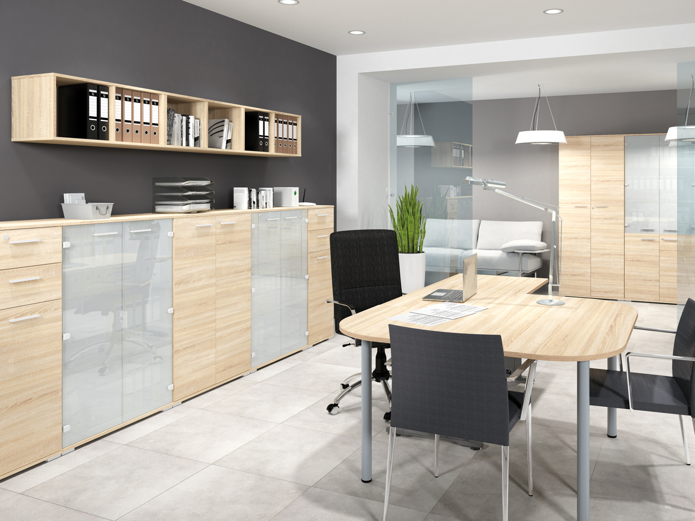 Kancelársky nábytok Optimal sa výborne hodí pre zariadenie klasických kancelárskych priestorov, rovnako ako kancelárií typu open space a konferenčných miestností. Poskytuje funkčný priestor a perfektnú organizáciu práce. Nábytok Optimal je celá paleta skriniek, políc a komôd, ktoré umožňujú optimálne ukladanie a archiváciu dokumentov v kancelárií. Široká škála písacích stolov a rôzneho tvaru stolíkov s pracovnými doskami z kvalitných laminovaných dosiek hrúbky 22 mm a okrajom ABS 2 mm, vztiahnutých na kovových podkladoch ponúka veľa možností usporiadania. Prepážky na písacie stoly oddeľujúce priestory pre zamestnancov umožňujú vytvoriť multi-systémy. Ďalšou dôležitou výhodou je štandardné vybavenie zámkami skríň a policových regálov a kontajnerov centrálnym zamykaním, čo umožňuje zachovať súkromie na svojom pracovisku.