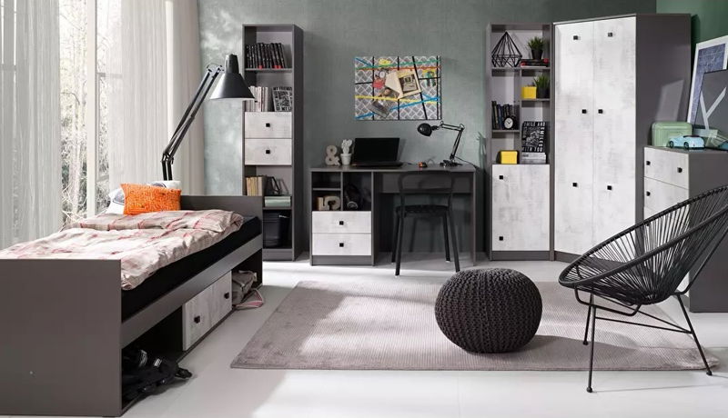 Policová skriňa Torton T6 v grafitej farbe s enigmou výšky 193 cm a hĺbky 42 cm je ideálna pre tých, ktorí hľadajú úzku skriňu s otvorenými poličkami a menšími zásuvkami uprostred. Tento produkt je dokonalý pre študentské izby a vytvorí príjemný priestor svojím prevedením. Skriňa má plastové úchyty a nožičky, ktoré dodávajú produktu eleganciu a štýl. Materiál výroby je drevotrieska s hrúbkou 16 mm. Tento produkt vám ponúka dostatočne veľa miesta na uskladnenie vašich vecí a zároveň je ľahko presúvateľný. Kúpte si tento produkt a vytvorte si dokonalý priestor na uskladnenie vašich vecí ešte dnes.