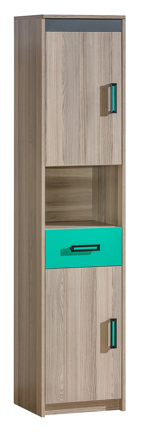 Policová skriňa so šírkou 42 cm je ideálna hlavne do detskej izby na odkladnanie hračiek, kníh, učebníc alebo aj oblečenia. S modelovou radou Ulmo môžete zariadiť kompletne celú detskú izbu. Nábytok je dostupný v troch farebných prevedeniach. Vyrobený je z laminovaných dosiek.
