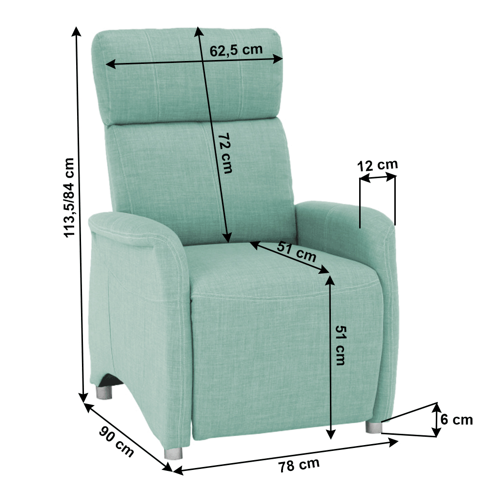 Polohovacie kreslo Flosis v zelenej farbe je relaxačné a mechanicky polohovateľné kreslo s výsuvnou podnožkou. Tento nábytok vám poskytne najlepšie pohodlie pre vaše chrbátne svaly. Kreslo je vyrobené z tkaniny, masívneho dreva a preglejky, pričom tkanina má odolnosť voči poškodeniu až 90 000 oderov podľa testu Martindale. Výška sedenia kresla je 51 cm s rovnakou šírkou a hĺbkou sedenia. Chrbtová opierka má výšku 62,5 cm a šírku opierky na ruky je 12 cm. Celková dĺžka po rozložení kresla je 164 cm. Nožičky kresla sú v chrómovej farbe a majú výšku 6 cm. Kreslo má maximálnu nosnosť 150 kg. Výrobok sa dodáva v demonte.