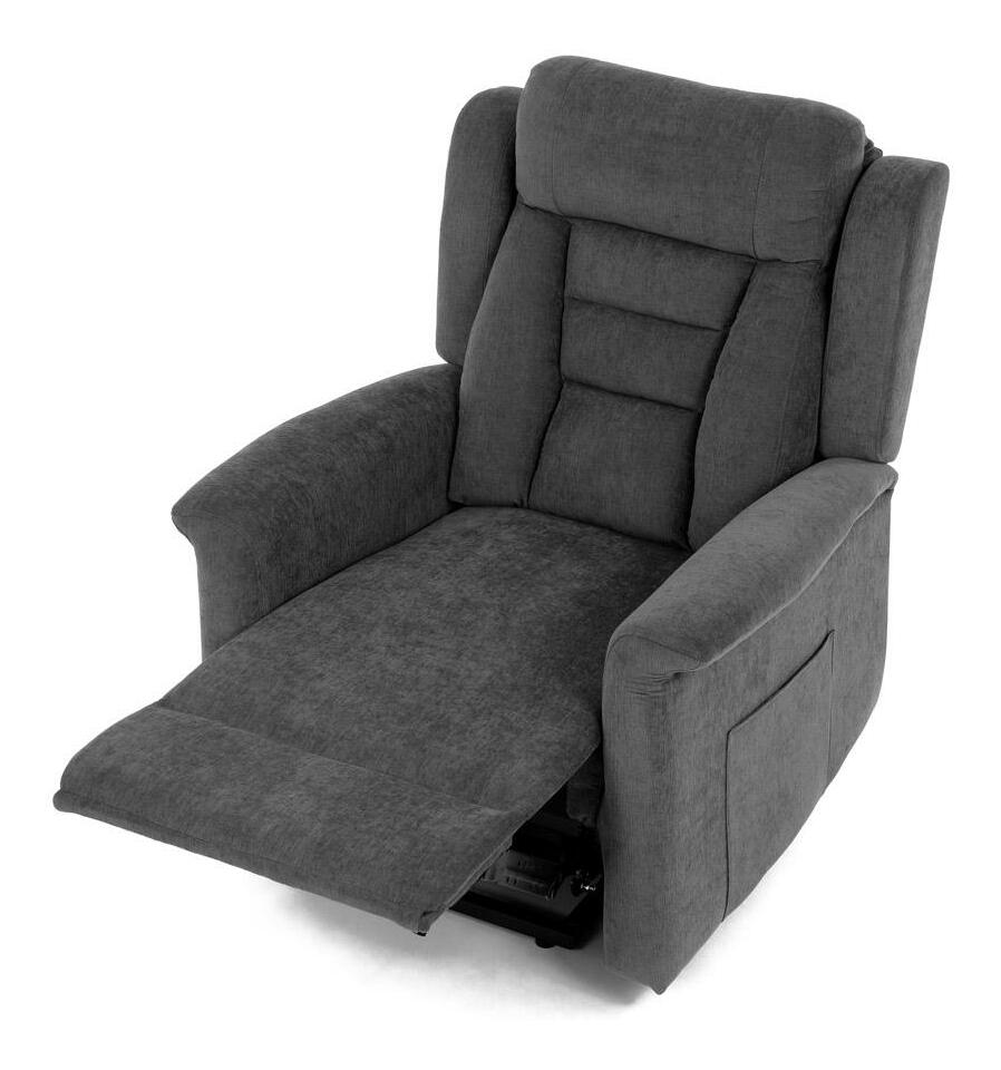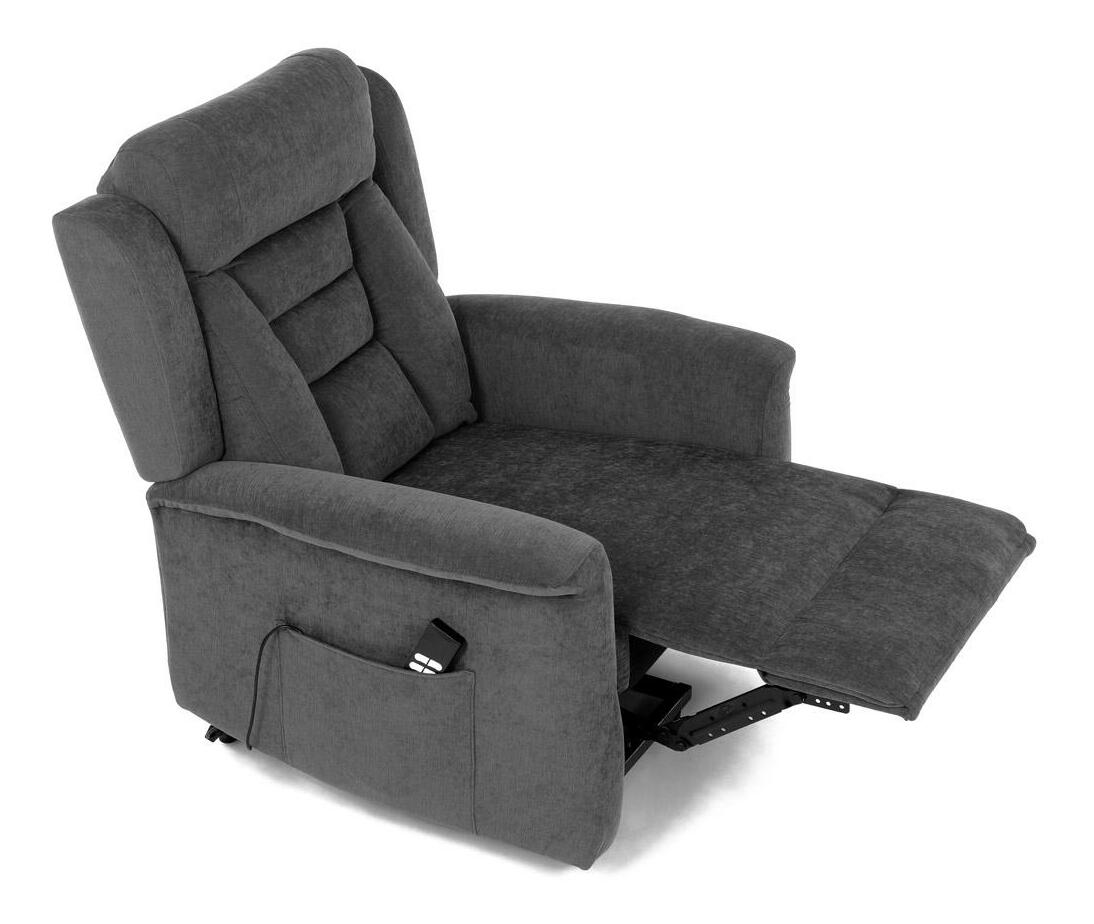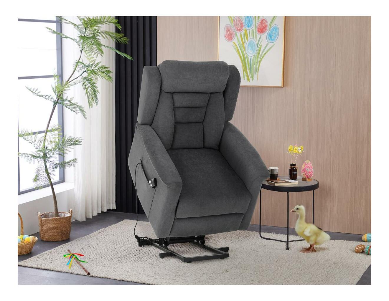 Elegantné relaxačné kreslo je ideálnou voľbou pre maximálne pohodlie. Jeho moderné šedé čalúnenie z hladkej látky zaisťuje príjemný dotyk a jednoduchú údržbu. Vďaka elektrickému ovládaniu a dvom motorom je možné kreslo ľahko polohovať. Špeciálna výklopná funkcia uľahčuje vstávanie. Polstrované podrúčky a ergonomický tvar poskytujú dokonalú oporu pri odpočinku. Tento štýlový a praktický kus nábytku perfektne doplní každý interiér a prinesie do vášho domova kúsok luxusu aj pohodlia.