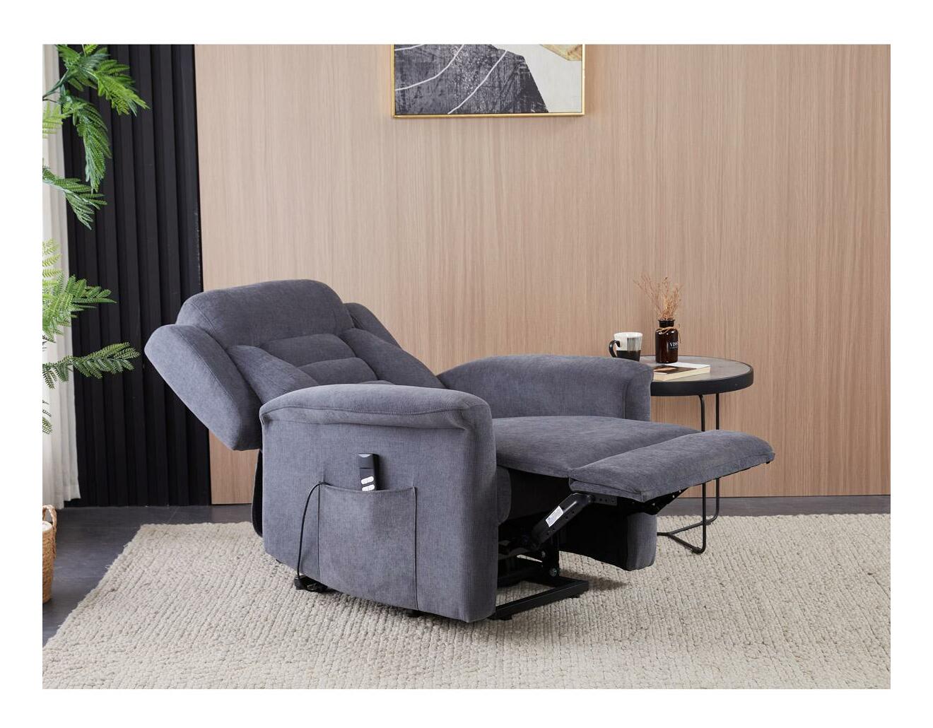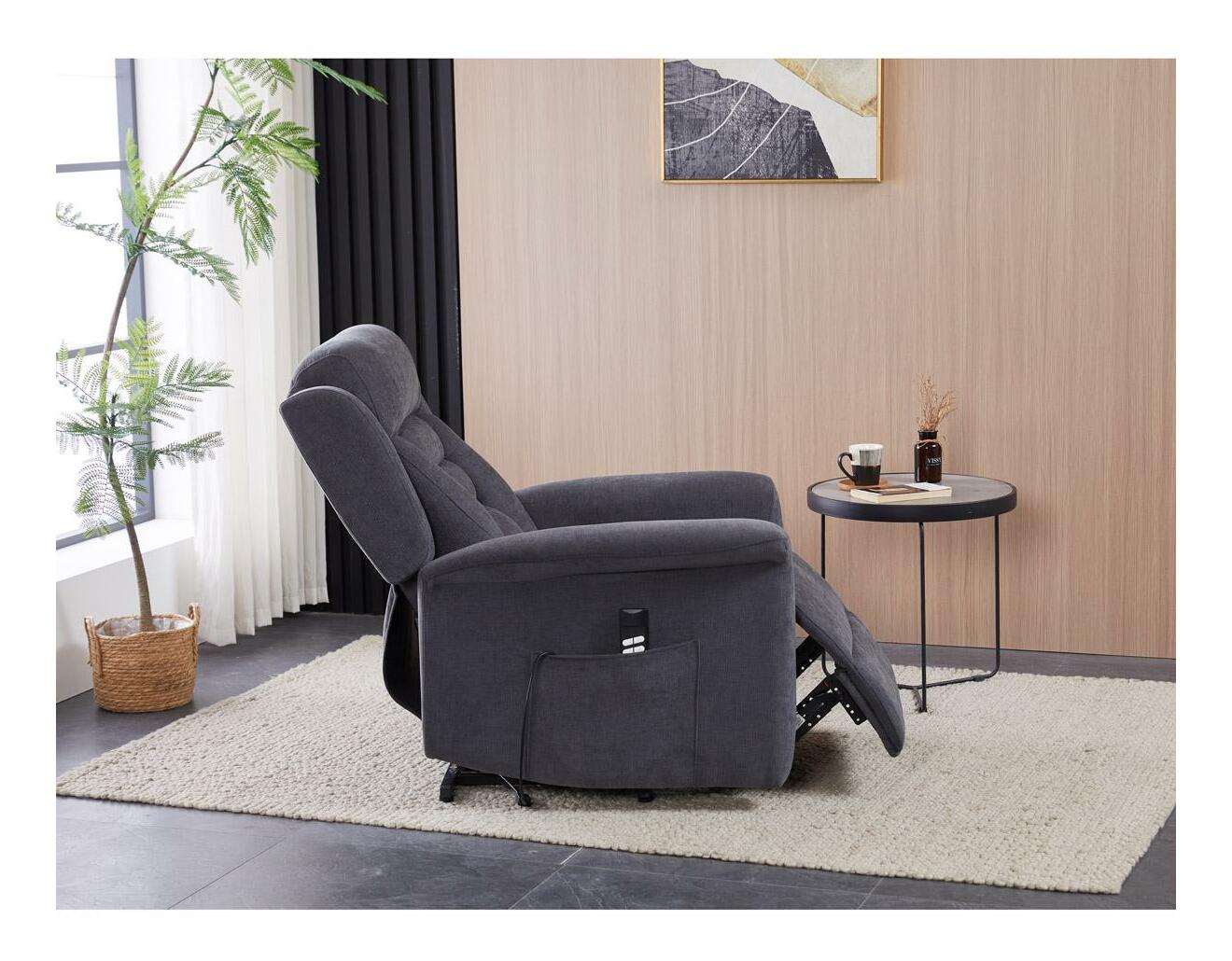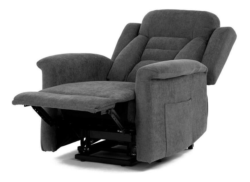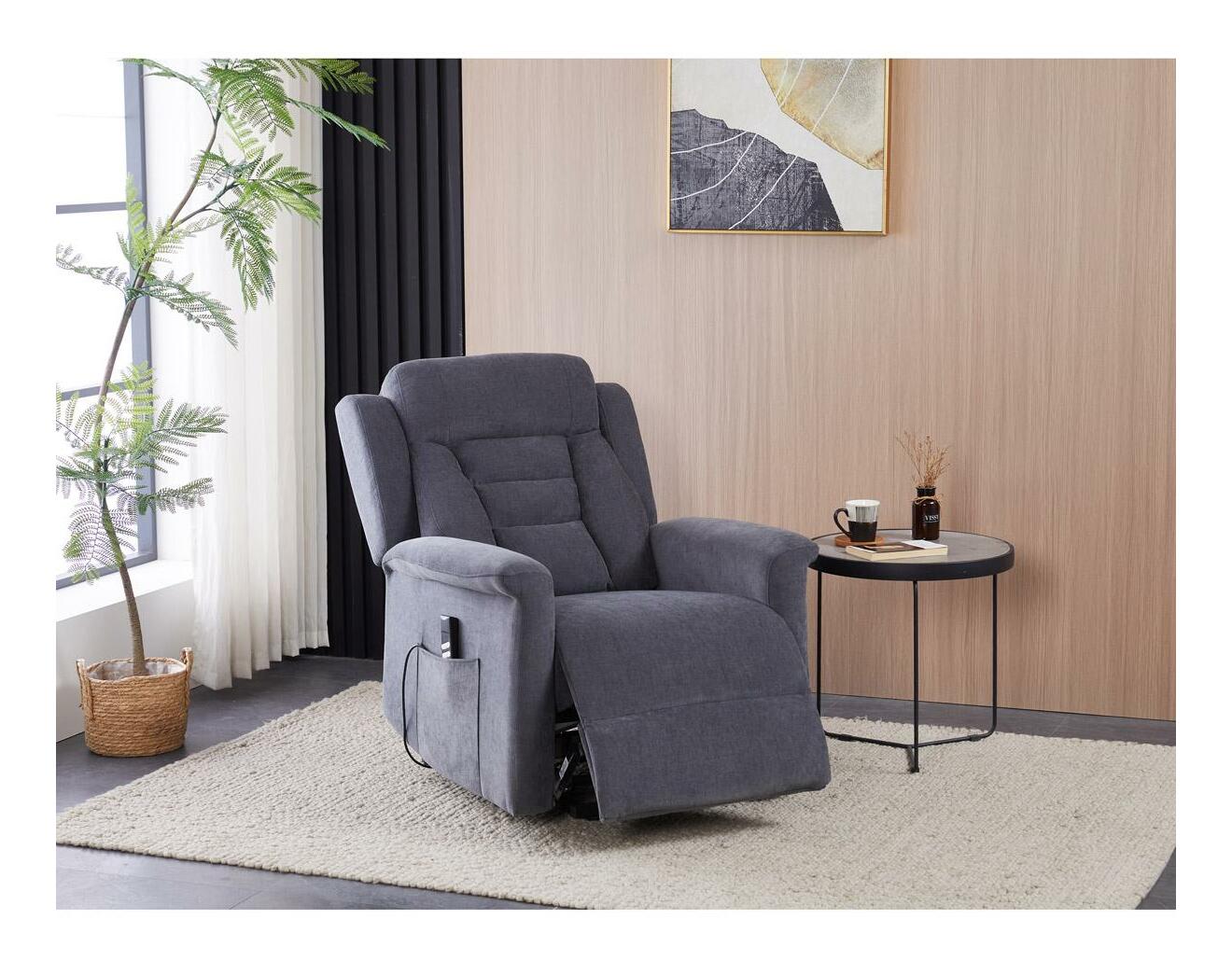 Elegantné relaxačné kreslo je ideálnou voľbou pre maximálne pohodlie. Jeho moderné šedé čalúnenie z hladkej látky zaisťuje príjemný dotyk a jednoduchú údržbu. Vďaka elektrickému ovládaniu a dvom motorom je možné kreslo ľahko polohovať. Špeciálna výklopná funkcia uľahčuje vstávanie. Polstrované podrúčky a ergonomický tvar poskytujú dokonalú oporu pri odpočinku. Tento štýlový a praktický kus nábytku perfektne doplní každý interiér a prinesie do vášho domova kúsok luxusu aj pohodlia.