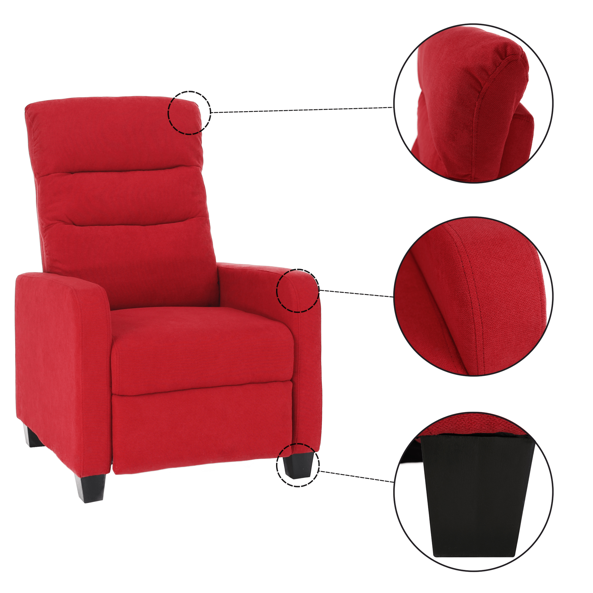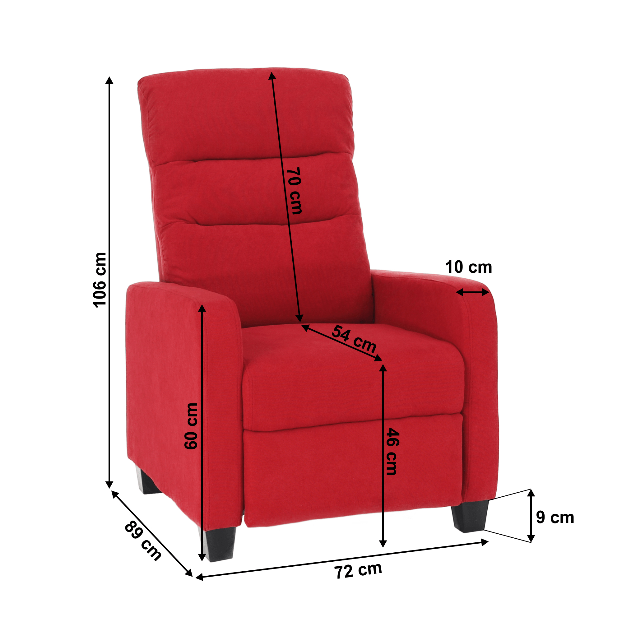 Polohovacie kreslo Tursus v červenej farbe je relaxačné kreslo s mechanickým polohovaním a výsuvnou podnožkou. Výška kresla je 106 cm a hĺbka 89 cm. Kreslo je vyrobené z tkaniny, masívneho dreva a preglejky. Sedák kresla má výšku 46 cm, šírku sedu nie je uvedená, hĺbka sedu je 54 cm, výška chrbtovej opierky je 63 cm a šírka opierky na ruky je 10 cm. Kreslo je dodávané v demonte a je k dispozícii vo viacerých farbách. Celková dĺžka po rozložení nie je uvedená, ale výška opierky na ruku je 60 cm. Farba nožičiek je čierna a ich výška je 9 cm. Kreslo má nosnosť 100 kg. Doprajte svojmu chrbtu to najlepšie pohodlie s kreslom Tursus.