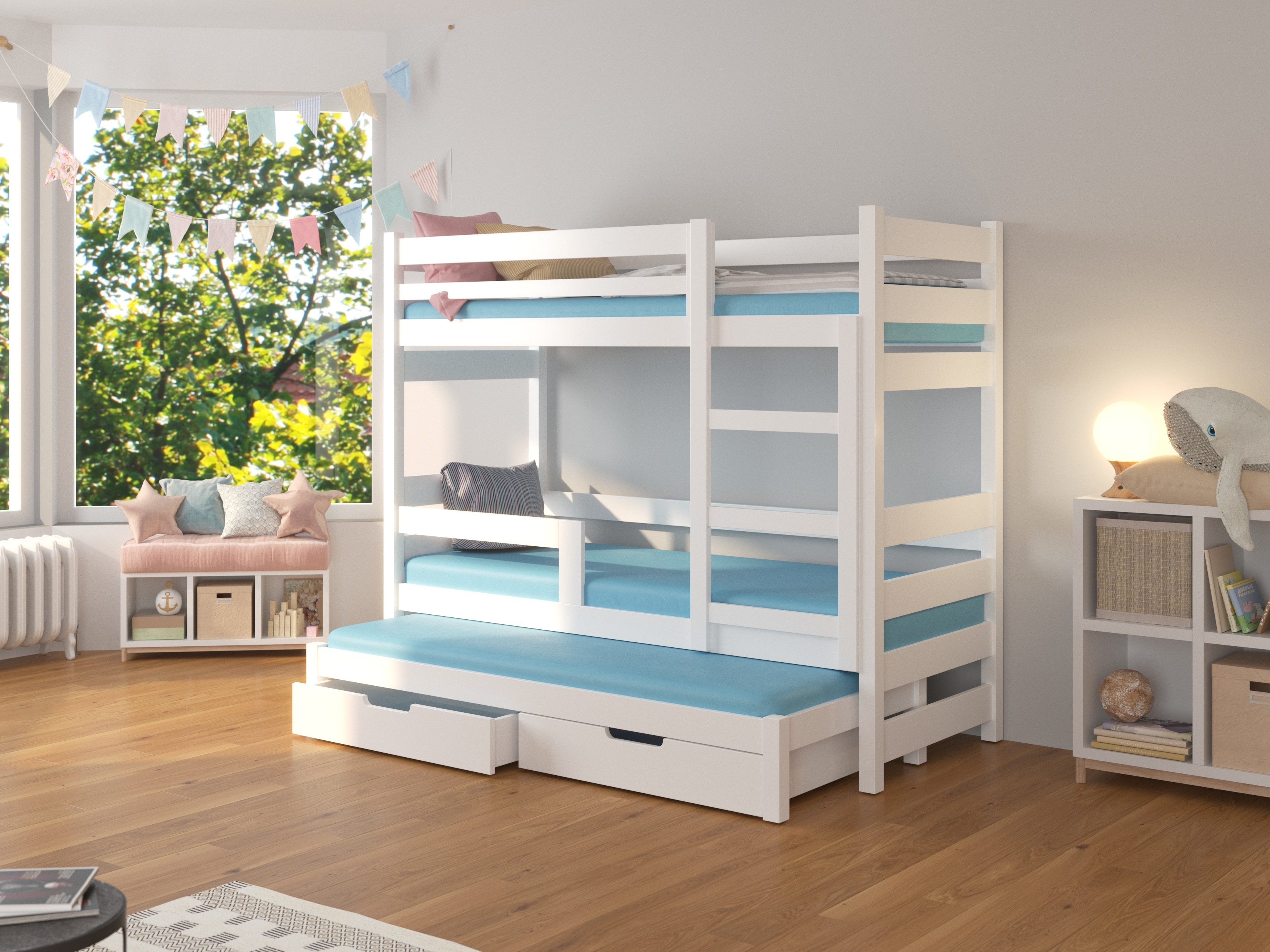 horné lôžka: 180 x 75 cm, spodné výsuvné lôžko: 172 x 75 cm