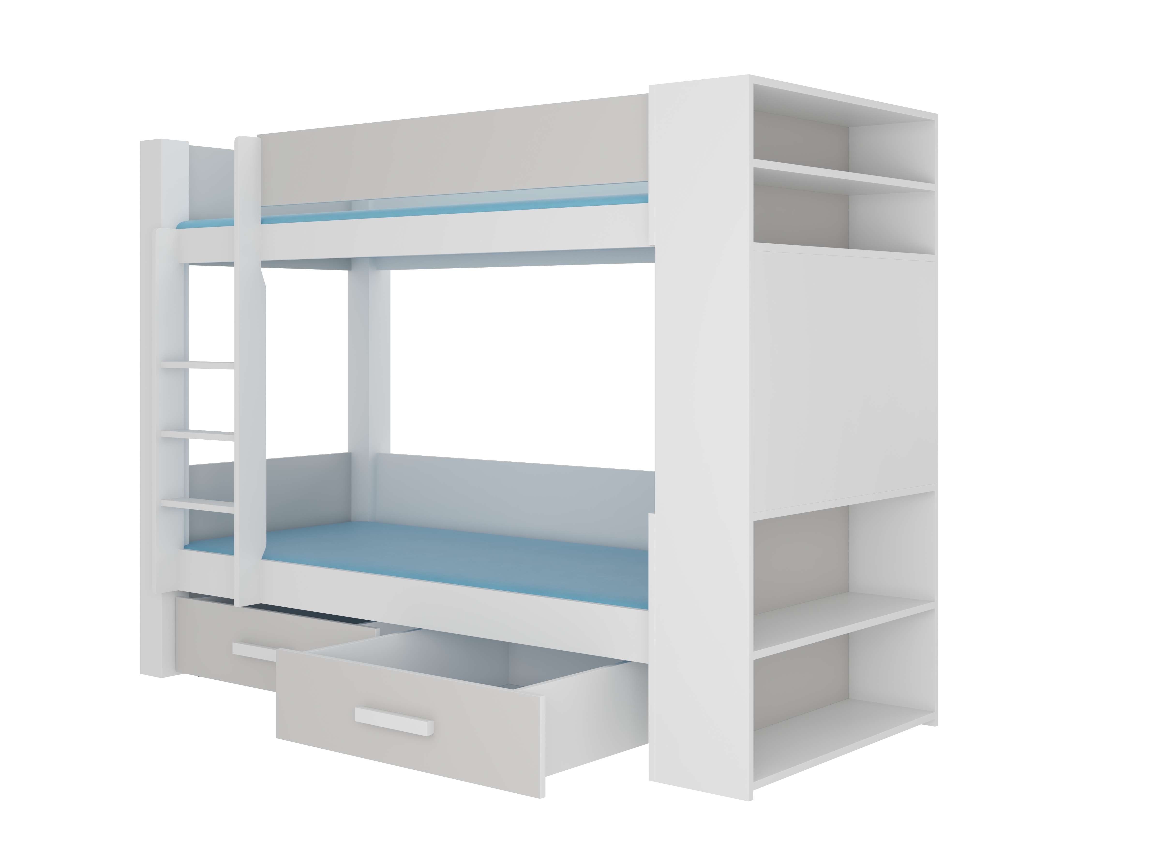 Poschodová detská posteľ 180x80 cm Gabriela (s roštom a matracom) (biela + sivá)