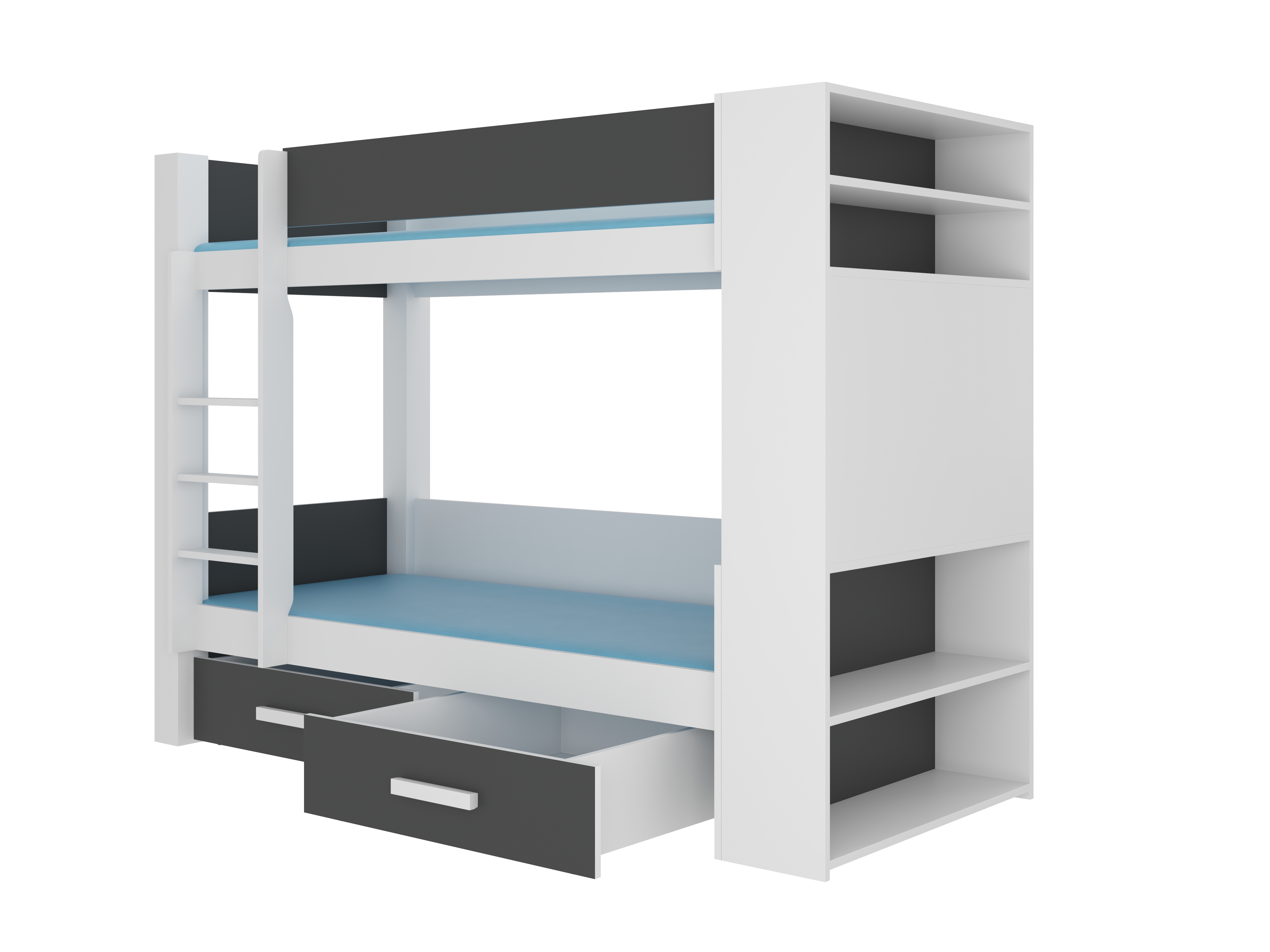 Poschodová detská posteľ 180x80 cm Gabriela (s roštom) (biela + antracit)