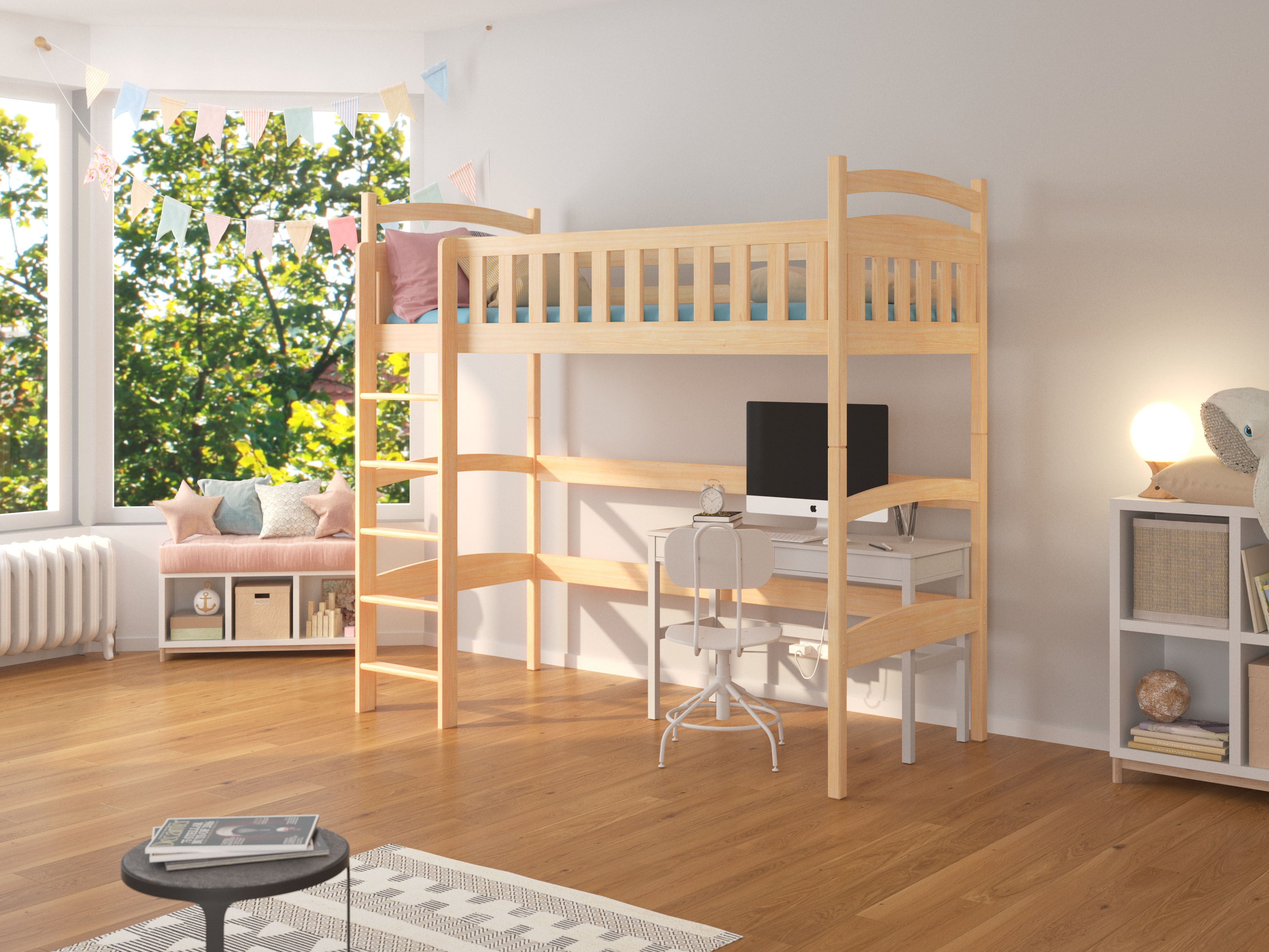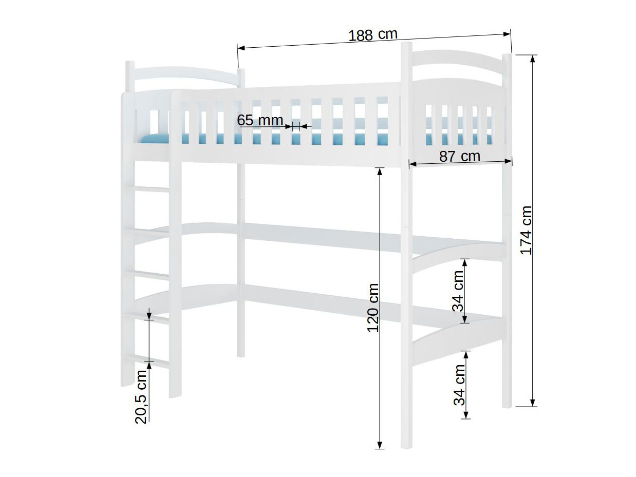 Poschodová detská posteľ MILO s rozmermi 180x80 cm a výškou 174 cm a hĺbkou 188 cm je ideálnou voľbou pre vašich malých miláčikov. Táto jednolôžková posteľ je vyrobená z kvalitnej borovice, ktorá zabezpečuje pevnosť a odolnosť celej konštrukcie. Posteľ MILO obsahuje lamelový rošt s hrúbkou 2 cm s nosnosťou až 90 kg, ktorý zaručuje pohodlný spánok pre vaše deti. Pod posteľou je dostatok priestoru na písací stôl, skrinky alebo ďalšie úložné riešenia, čo pomáha udržiavať izbu upratanú. Bariéra proti spadnutiu zabezpečuje bezpečnosť vašich detí, najmä v hornej časti postele. MILO tiež umožňuje voľbu strany rebríka, čo umožňuje prispôsobiť postieľku podľa priestoru v izbe. Výrobný proces MILO využíva ekologické vodové farby, ktoré sú bezpečné pre deti a odolné voči mechanickému poškodeniu. K baleniu prislúcha príslušenstvo na montáž a montážny návod. Balenie obsahuje 3 balíky, ktoré majú nasledujúce rozmery: 96,5x15x86 cm, 181x9x36 cm a 94x19x10 cm. Celková váha balíkov je 37 kg.