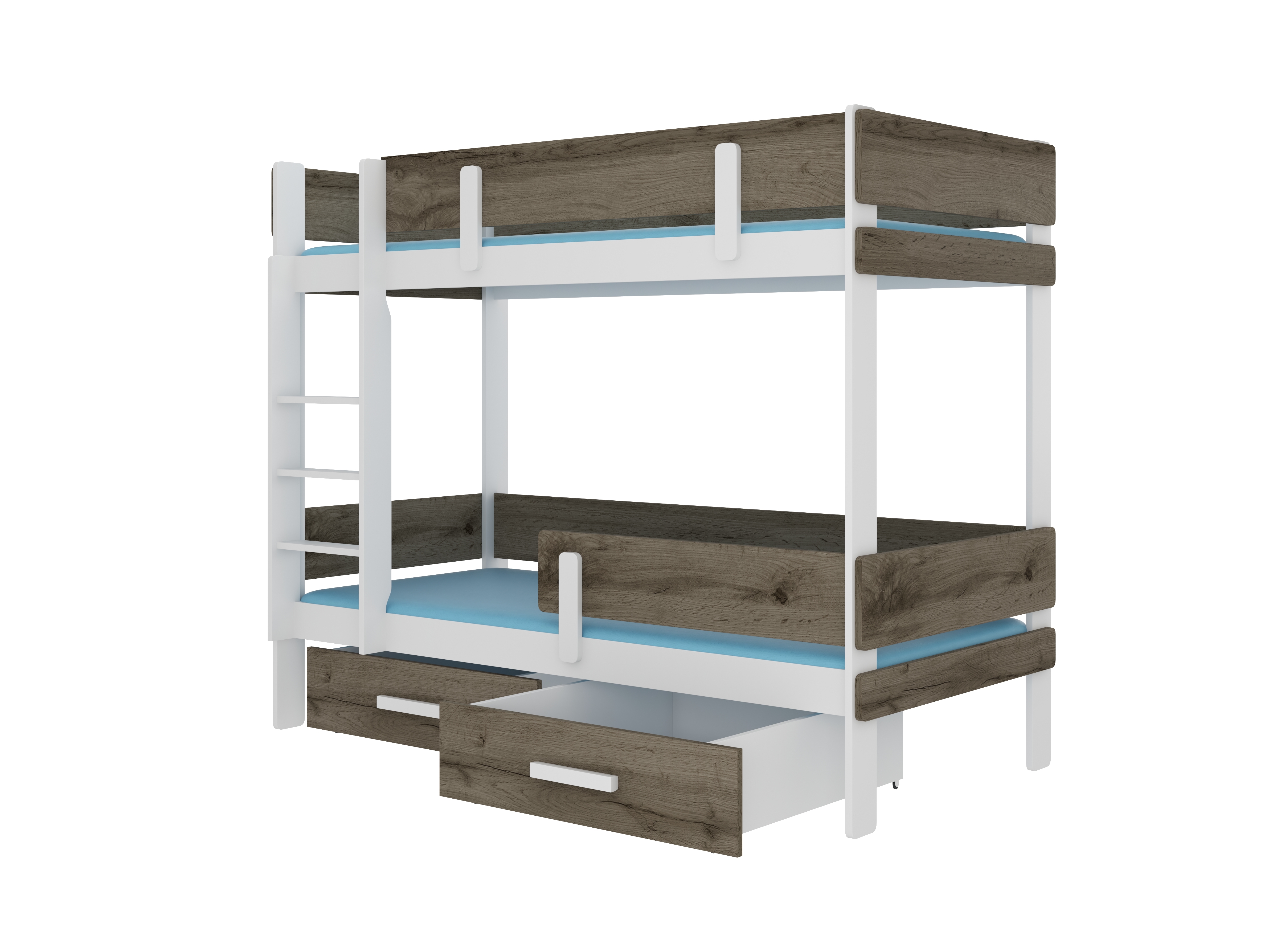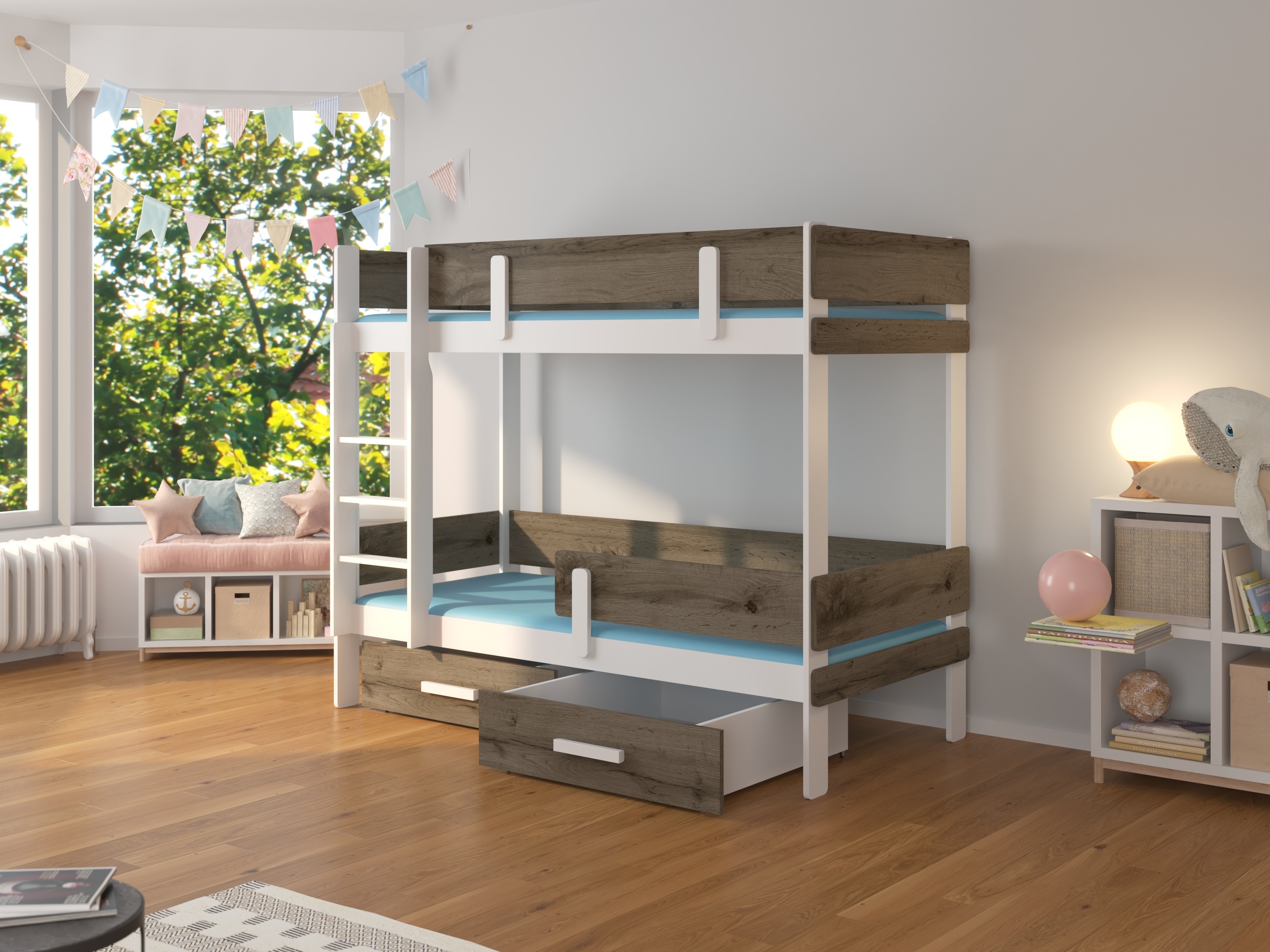 Poschodová detská posteľ 200x90 cm Ellen (s roštom) (biela + dub sivý)