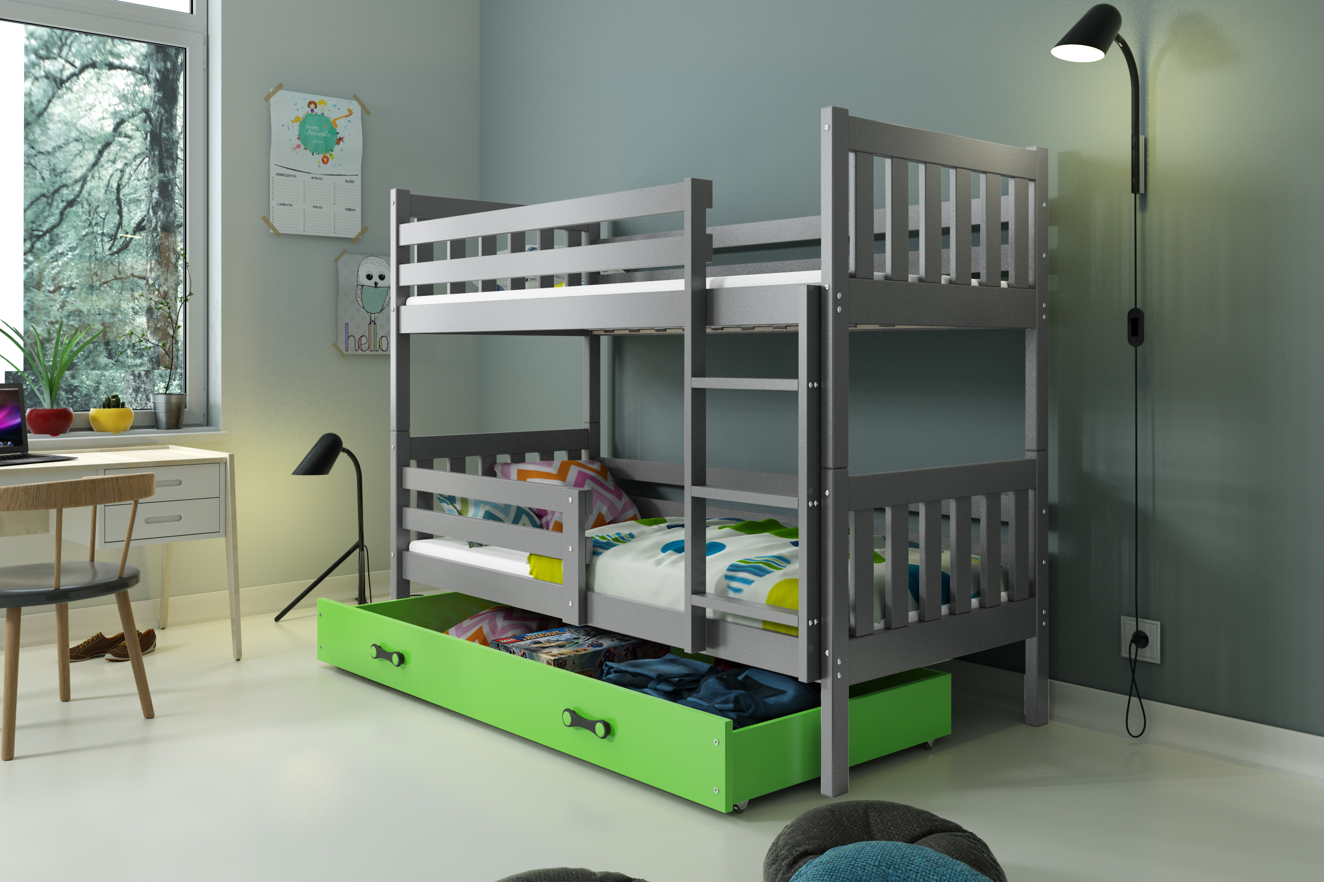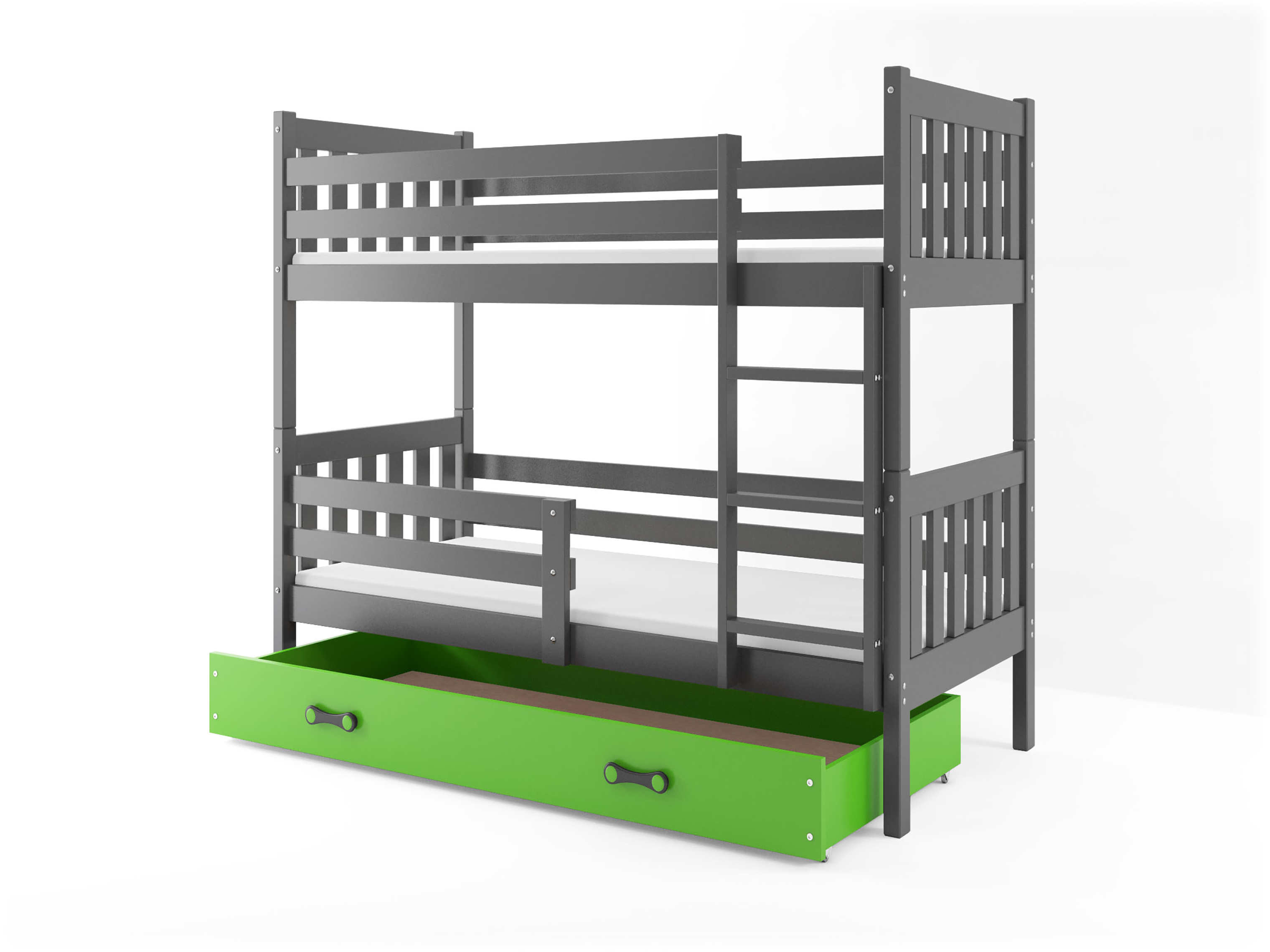 Poschodová posteľ 80 x 190 cm Carius B (grafit + zelená) (s roštami, matracmi a úl. priestorom)