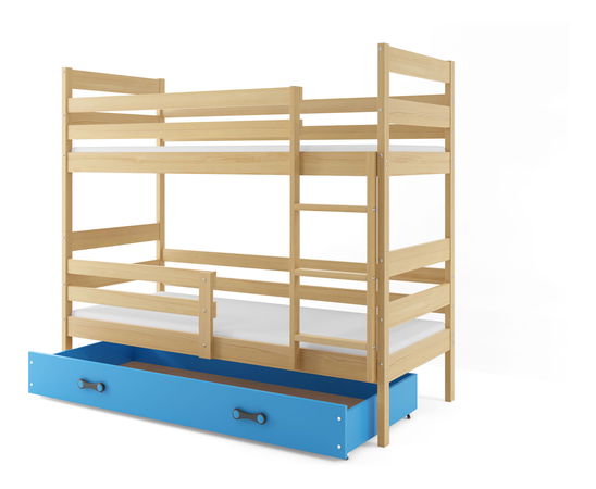 Poschodová posteľ 80 x 190 cm Eril B (borovica + modrá) (s roštami, matracmi a úl. priestorom)