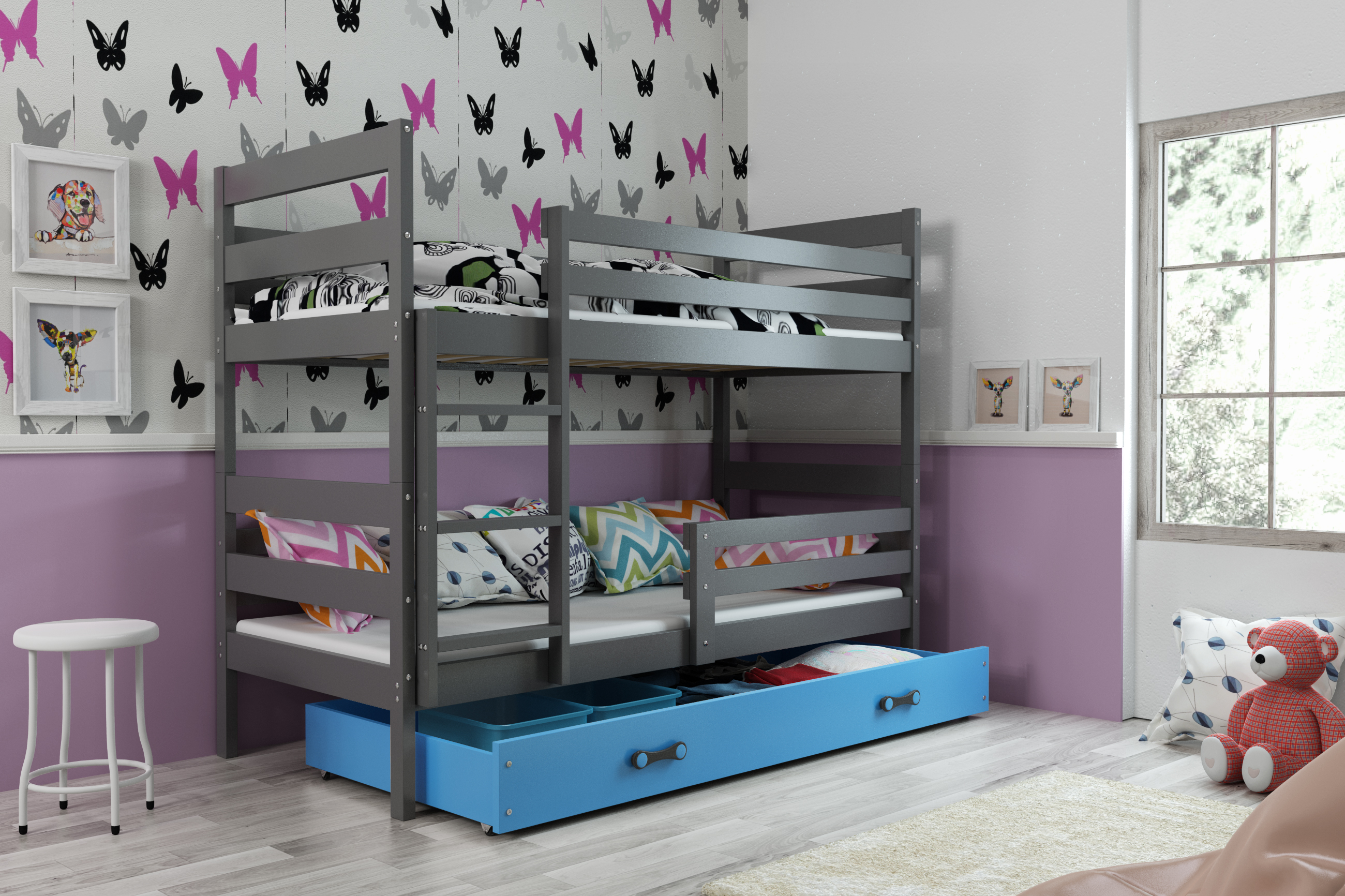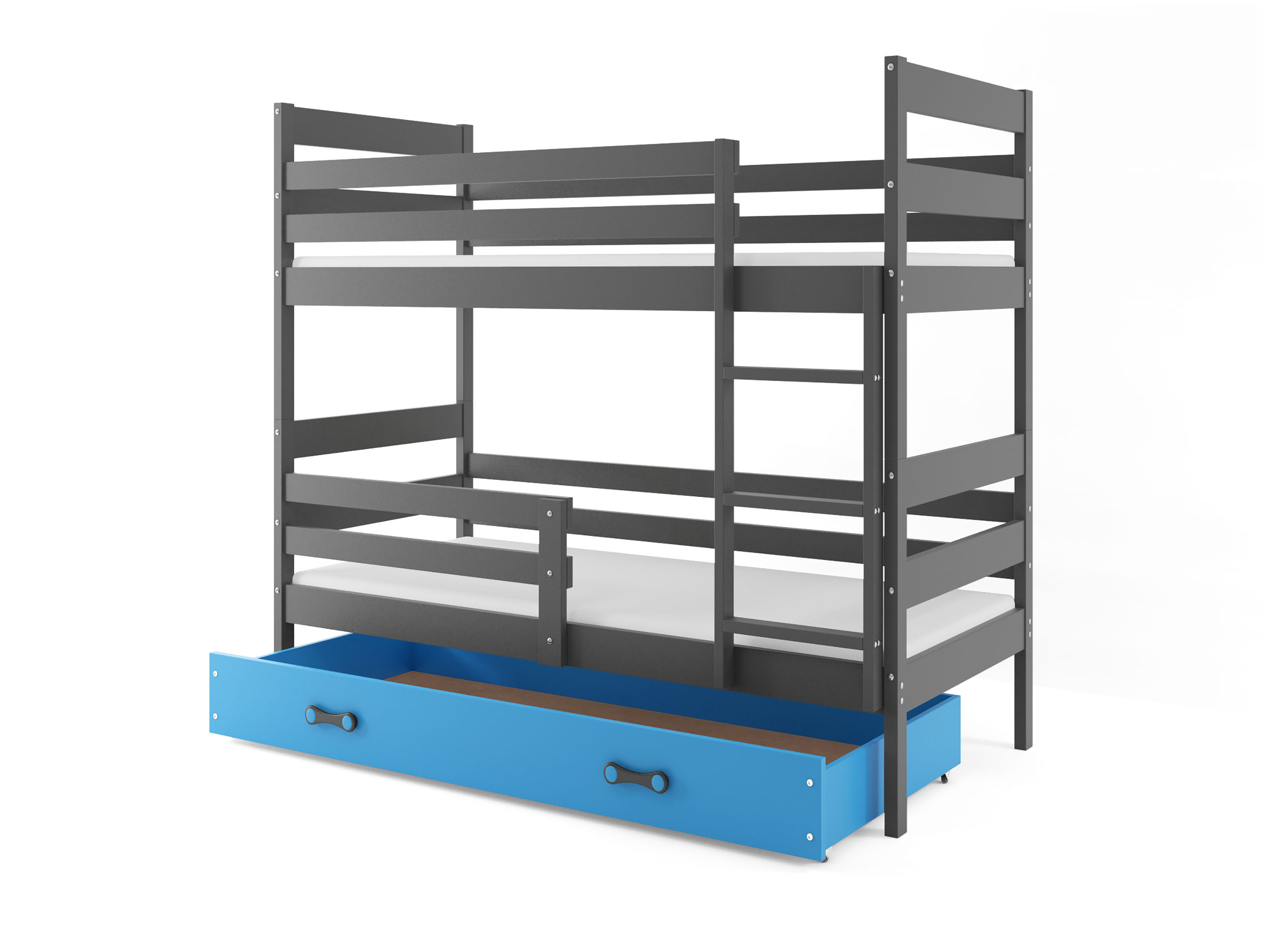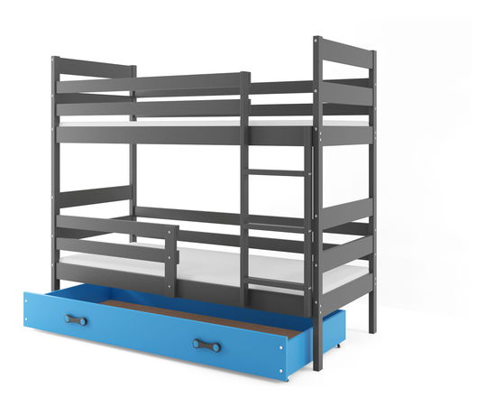 Poschodová posteľ 80 x 190 cm Eril B (grafit + modrá) (s roštami, matracmi a úl. priestorom)