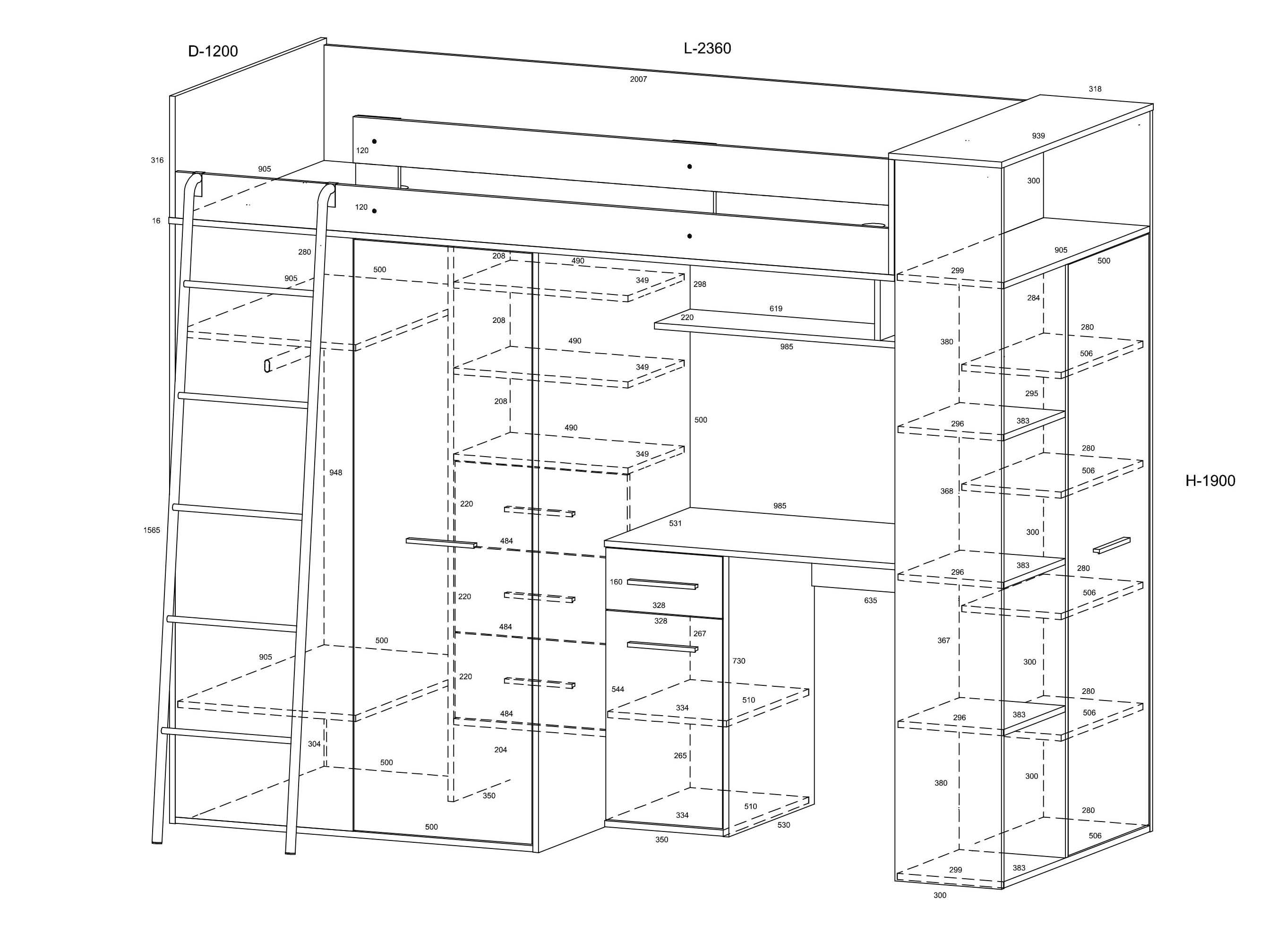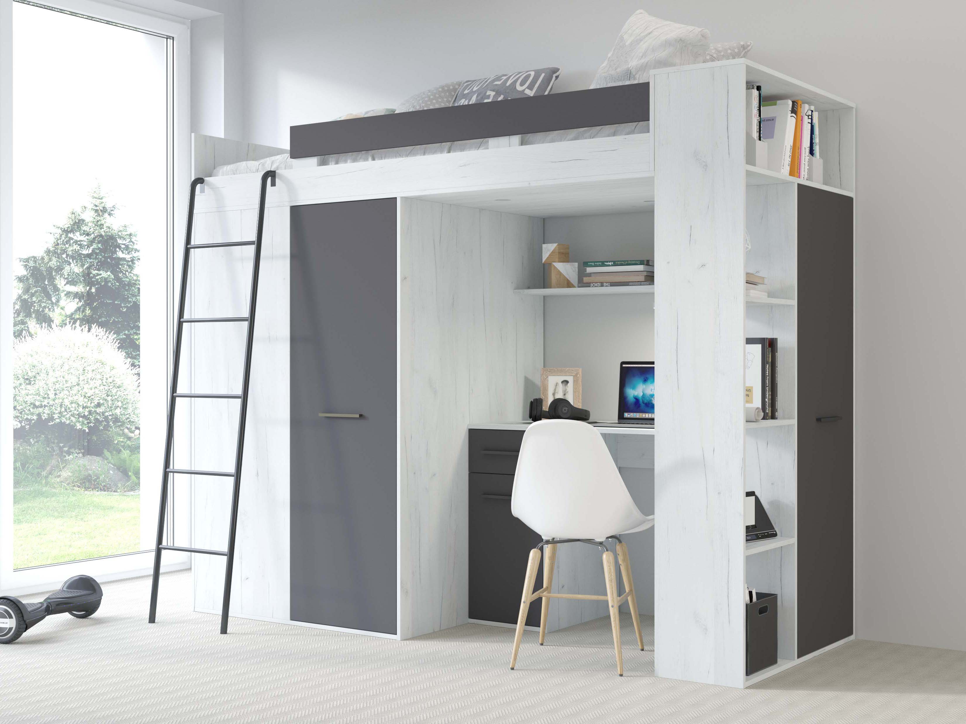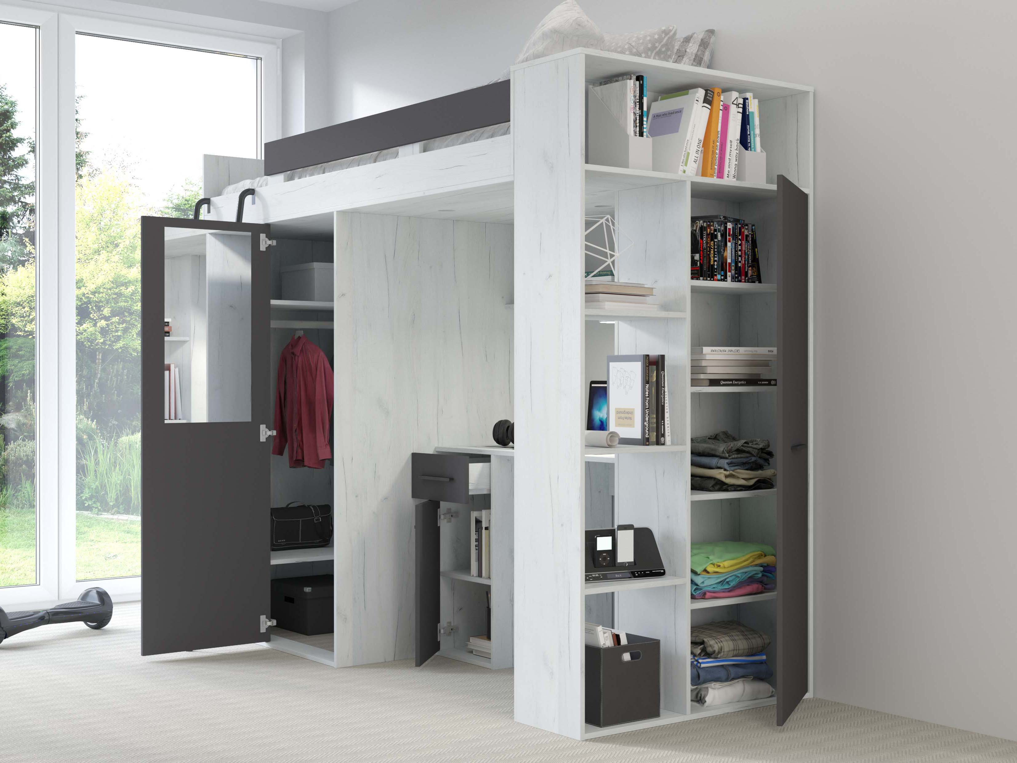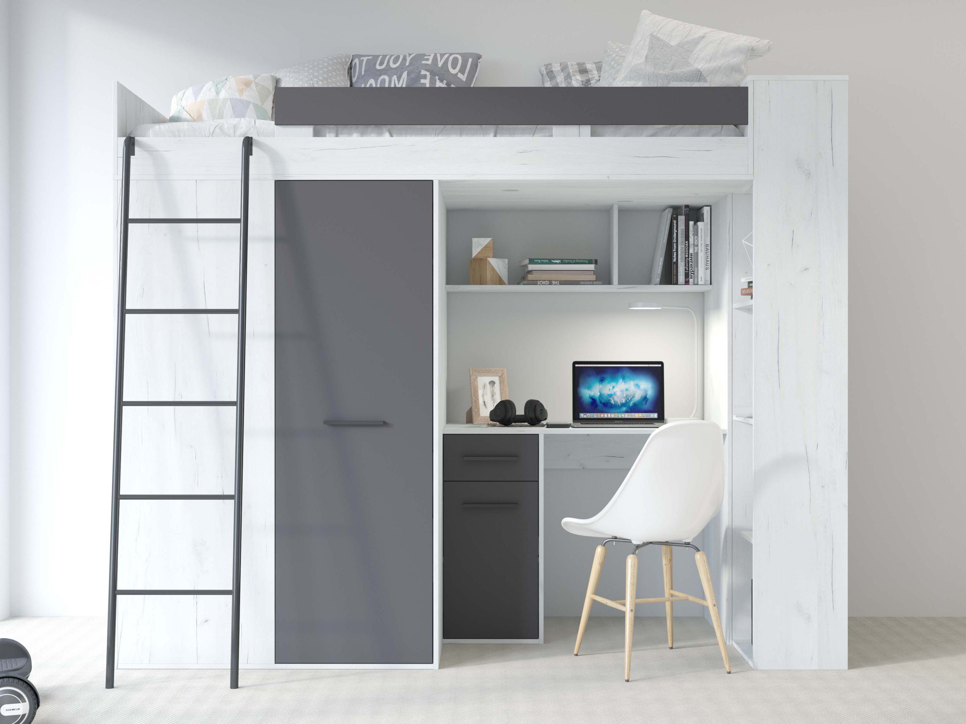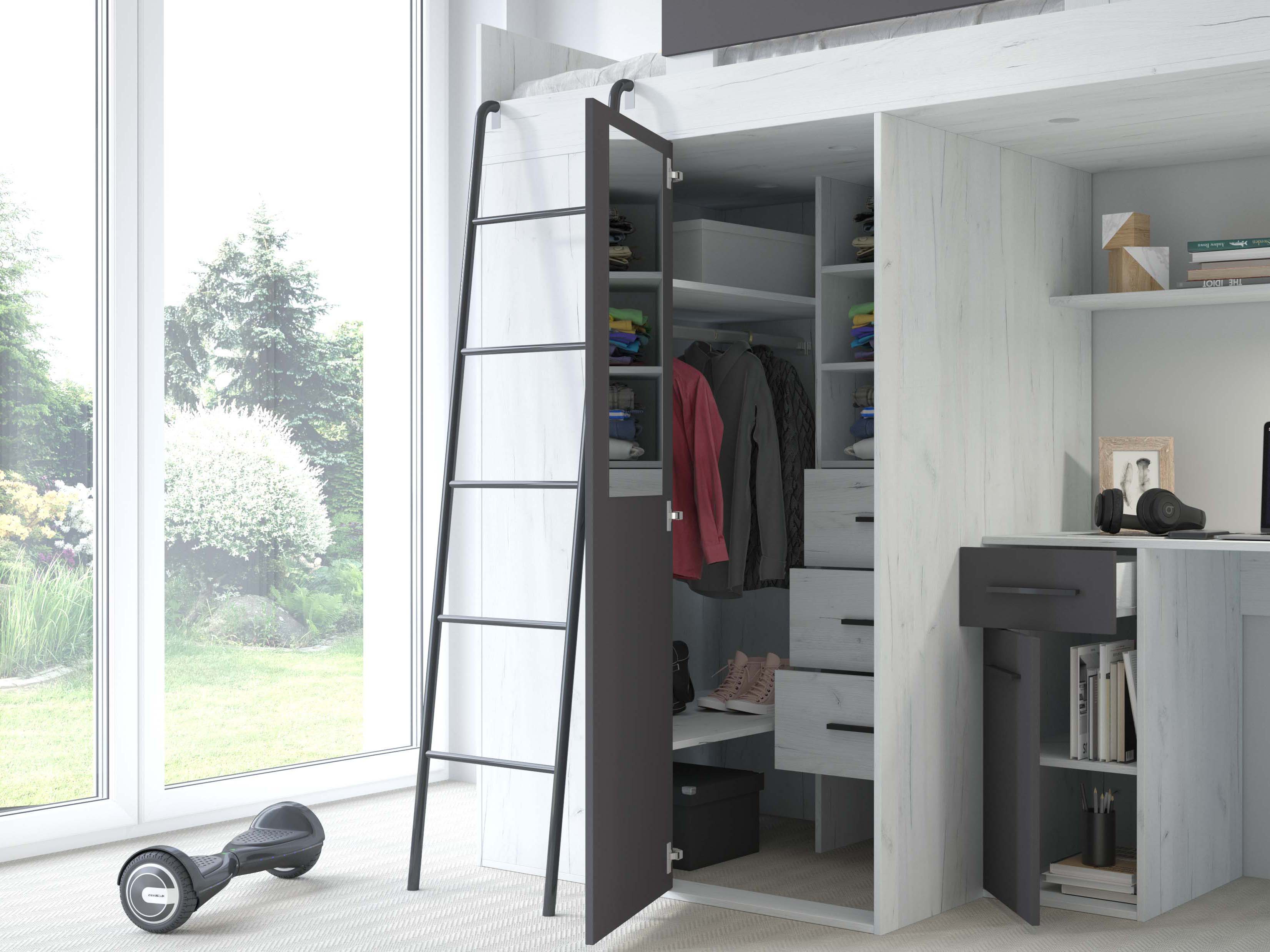 Poschodová posteľ Vivian je ideálnym riešením pre každého, kto hľadá multifunkčný nábytok, ktorý ušetrí veľa miesta. Táto posteľ je vyrobená z laminovanej drevotriesky s hrúbkou 16 mm a má výšku 190 cm a hĺbku 120 cm. Posteľ Vivian je k dispozícii v dvoch farebných prevedeniach - Dub Craft Biely + Grafit. Posteľ zahŕňa PC stolík so skrinkou a zásuvkou, poličky na odkladanie kníh, policovú skriňu, šatníkovú skriňu a rošt. Posteľ je vhodná pre matrace s výškou 12 cm a rozmery spánkovej časti sú 90x200 cm. Balenie obsahuje 7 balíkov s rozmernými špecifikáciami, ktoré sú uvedené vyššie. Upozorňujeme, že po odstránení ochrannej fólie z povrchu posteľa by ste mali počkať 24 hodín pred čistením. Čistiť posteľ odporúčame mierne vlhkou handričkou, bez použitia chemických prípravkov. Posteľ Vivian je dodávaná bez matraca a dostupná je v ľavej aj pravej verzii.