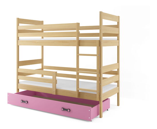 Poschodová posteľ 90 x 200 cm Eril B (borovica + ružová) (s roštami, matracmi a úl. priestorom)