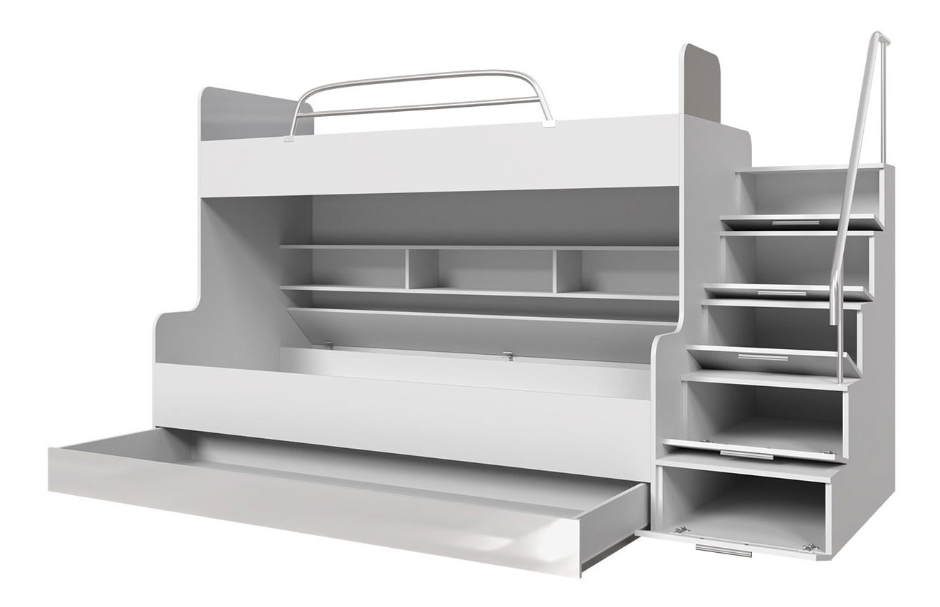 Poschodová posteľ Paralia II (biela + lesk biely + lesk sivý) (L)