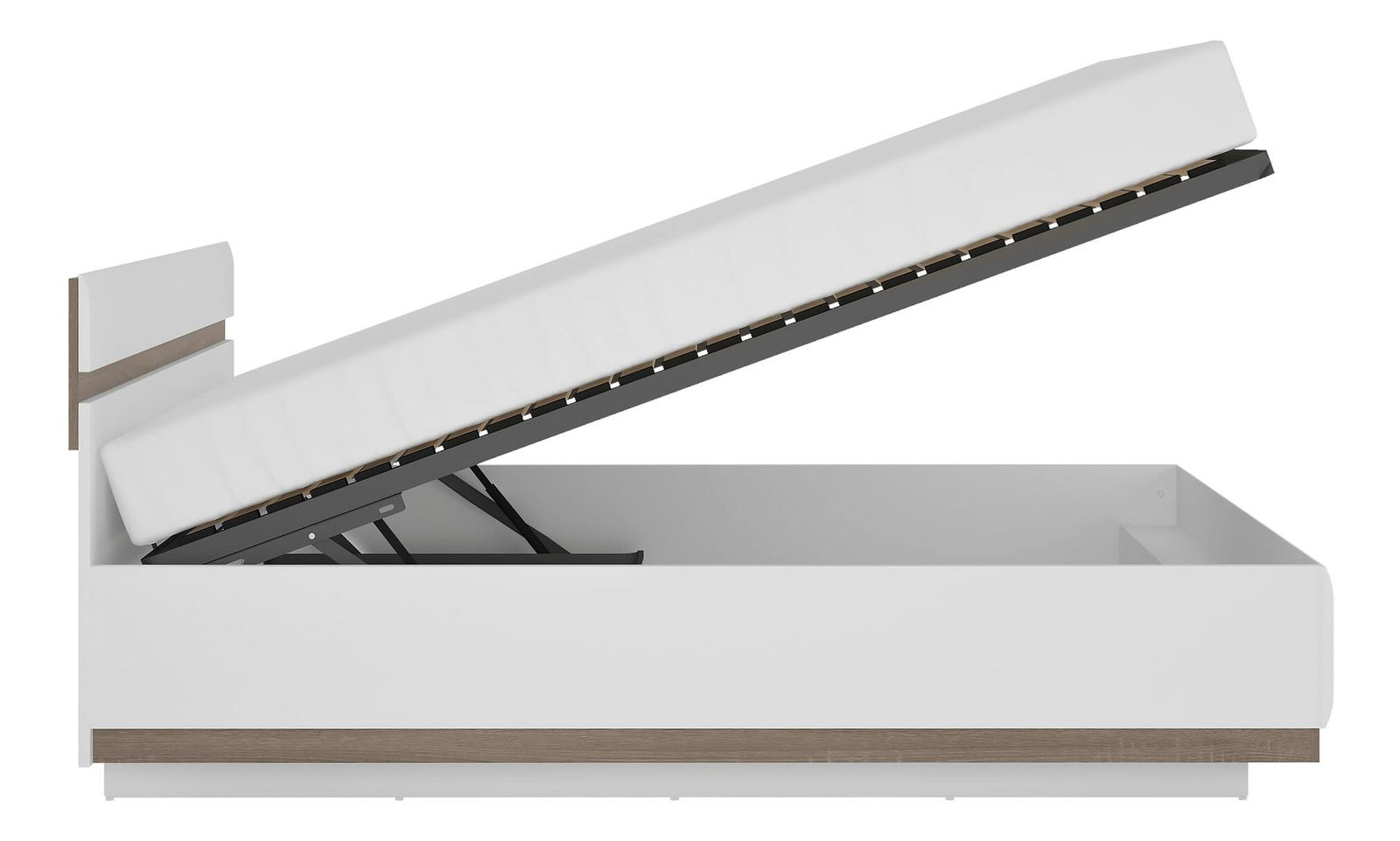 Posteľ s úložným priestorom Lonet (biela + dub sonoma tmavý truflový)