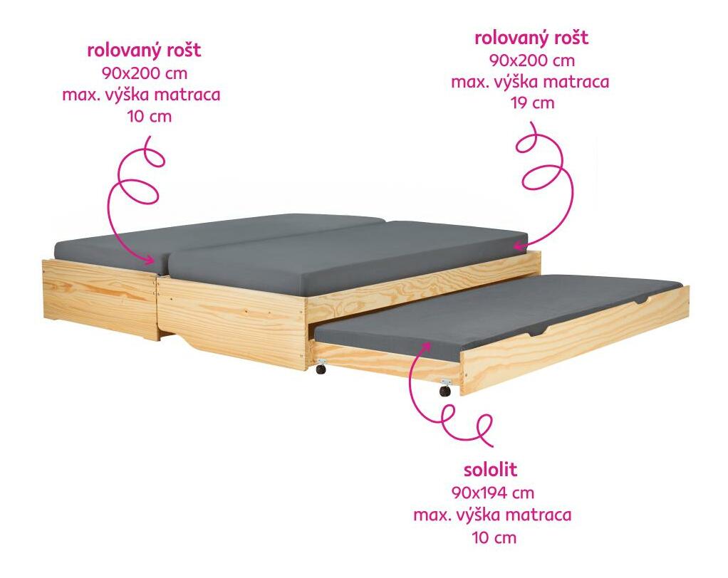 Posteľ s výsuvnými prístelkami Flapi (borovica)