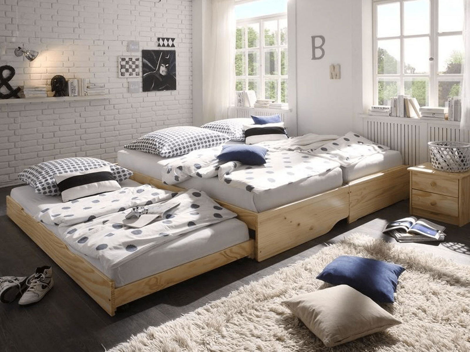 S dvoma prístelkami, výsuvná prístelka, dodávaná s latkovým roštom, prístelka na kolieskach, dodávané bez matracov