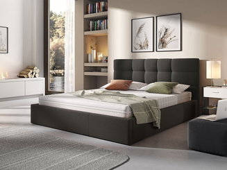 Manželská posteľ 180 cm Fabio (tmavohnedá + krémová) (s roštom a úl. priestorom)