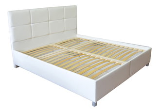 Manželská posteľ 160 cm Lewell (s čelným rámom) (s roštom a úl. priestorom) (biela)