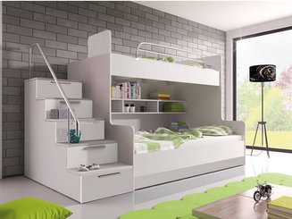 Poschodová posteľ iba pre jedno dieťa? Prečo nie? Presnejšie by sme ich mali volať vyvýšené detské postele. Na poschodí majú spravidla lôžko a v dolnej časti písací stôl pre školáka a vstavanú skrinku na oblečenie. Iné modely ponúkajú pod lôžkom priestor na hranie, kde môžete umiestniť napr. sedací vak a regál na hračky. Škôlkarom môže urobiť radosť napr. vyvýšená poschodová posteľ so šmýkačkou.