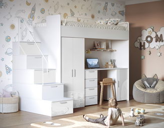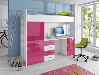Detská posteľ Ruby V (Biela + Sivá) (s roštami)
