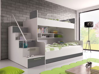 Poschodová detská posteľ 200x90 cm, 200x120 cm Homer (s roštom) (biela)