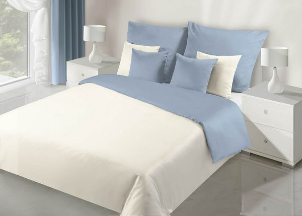 Posteľná bielizeň 200x180 cm Nova (krémová + svetlomodrá) (komplet s obliečkami na vankúše)