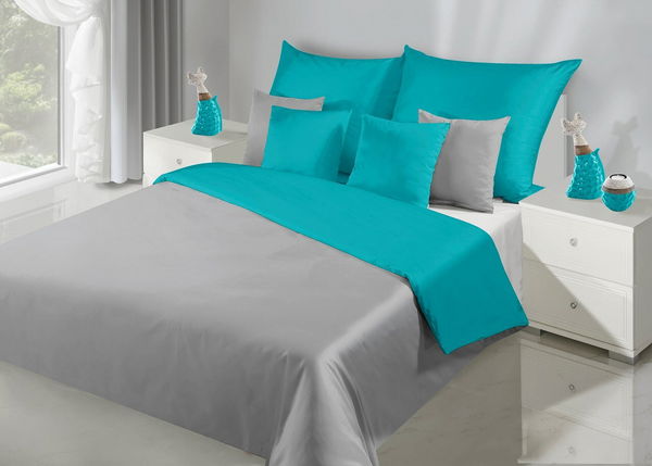 Posteľná bielizeň 200x220 cm Nova (strieborná + tyrkysová) (komplet s obliečkami na vankúše)