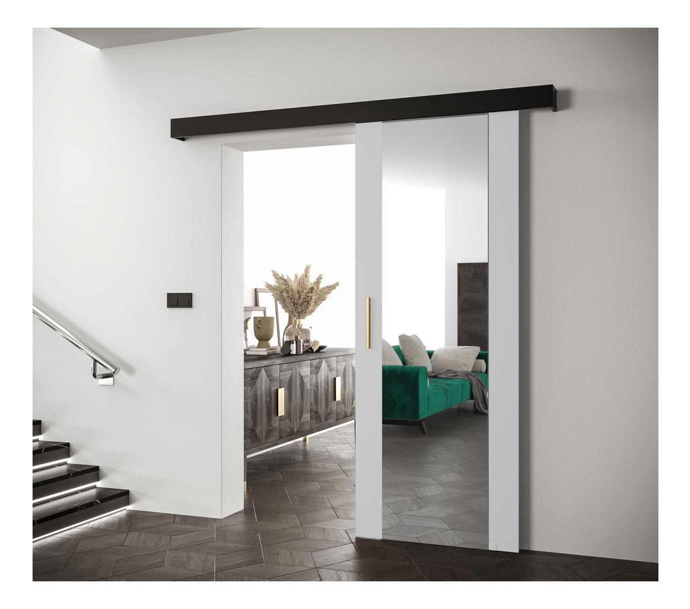 Posuvné dvere 90 cm Sharlene II (biela matná + čierna matná + zlatá) (so zrkadlom)