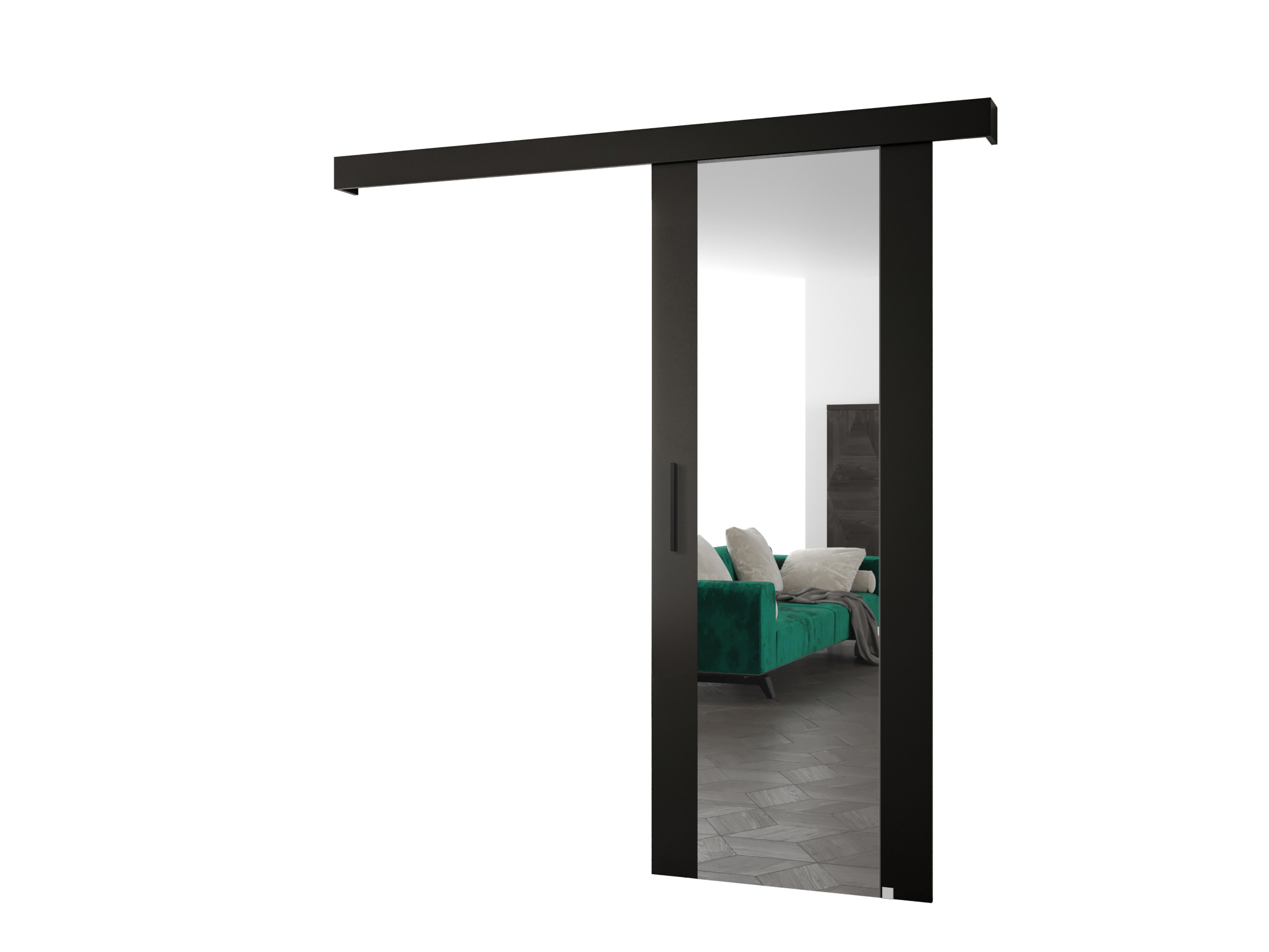 Posuvné dvere 90 cm Sharlene II (čierna matná + čierna matná + čierna) (so zrkadlom)