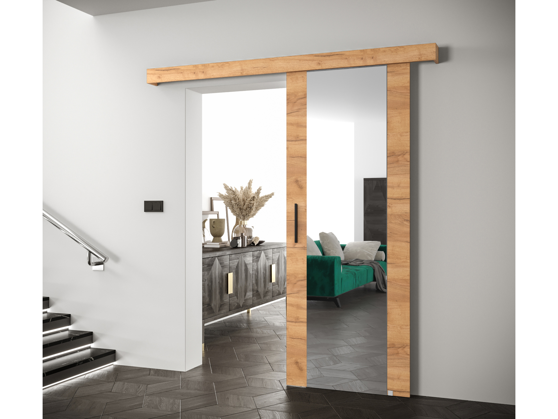 Posuvné dvere 90 cm Sharlene II (craft zlatý + craft zlatý + čierna) (so zrkadlom)
