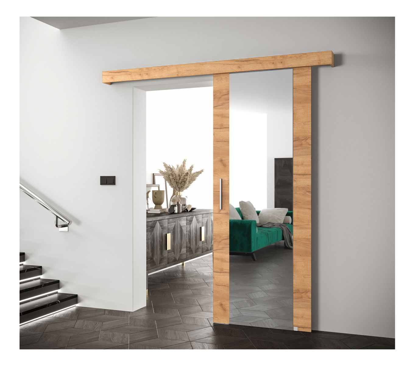 Posuvné dvere 90 cm Sharlene II (craft zlatý + craft zlatý + strieborná) (so zrkadlom)
