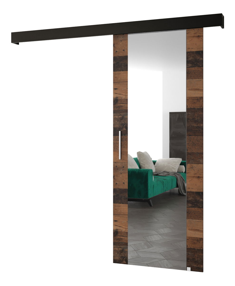 Posuvné dvere 90 cm Sharlene II (drevo old style + čierna matná + strieborná) (so zrkadlom)
