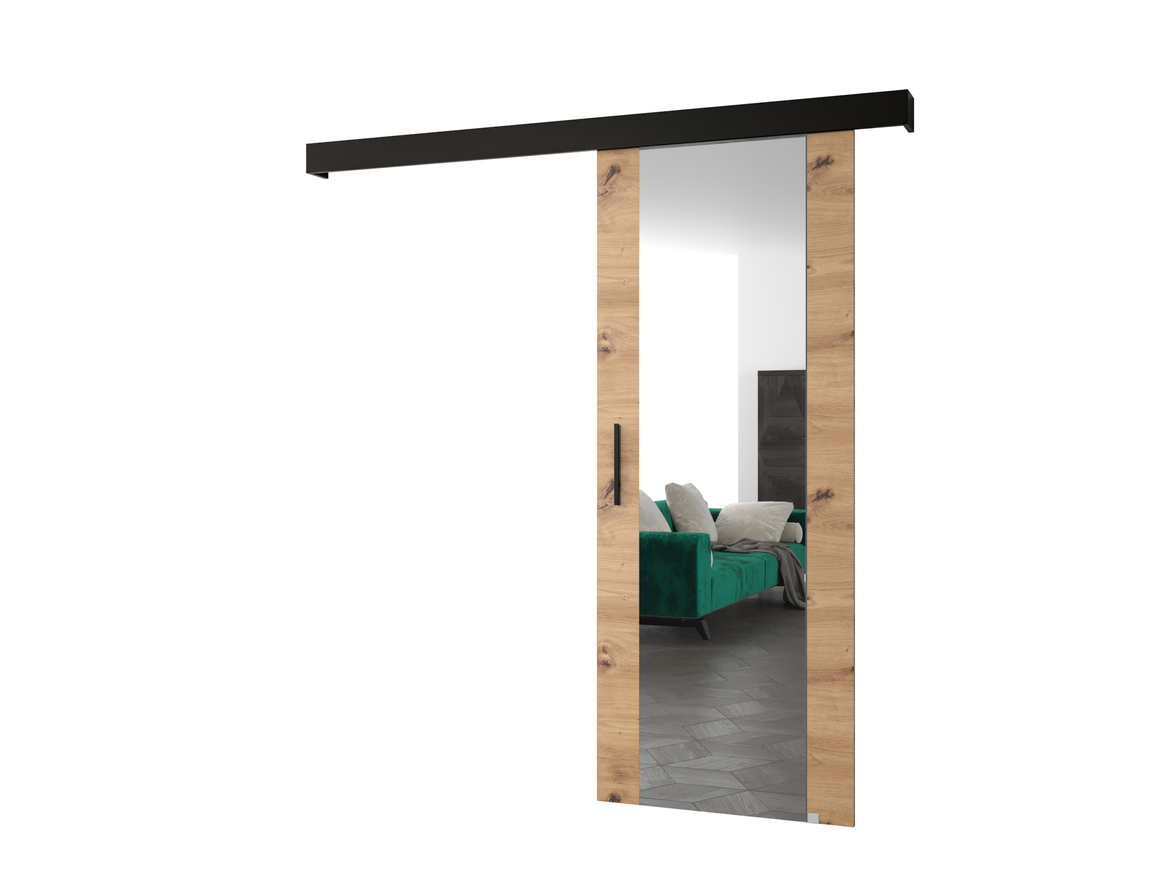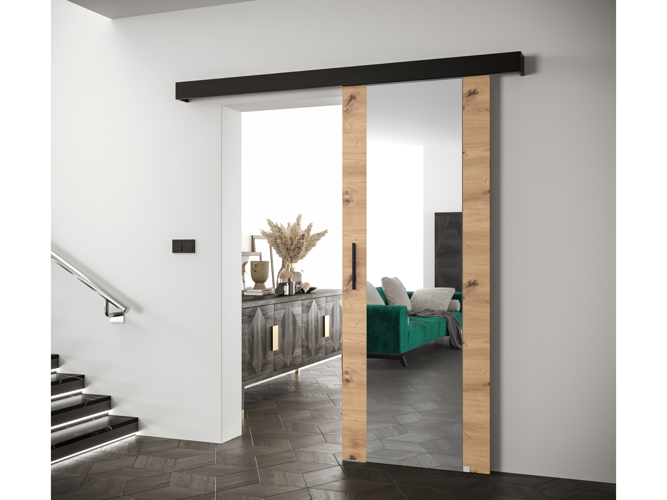Posuvné dvere 90 cm Sharlene II (dub artisan + čierna matná + čierna) (so zrkadlom)