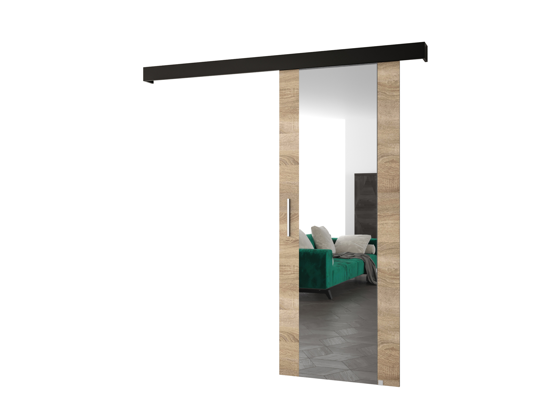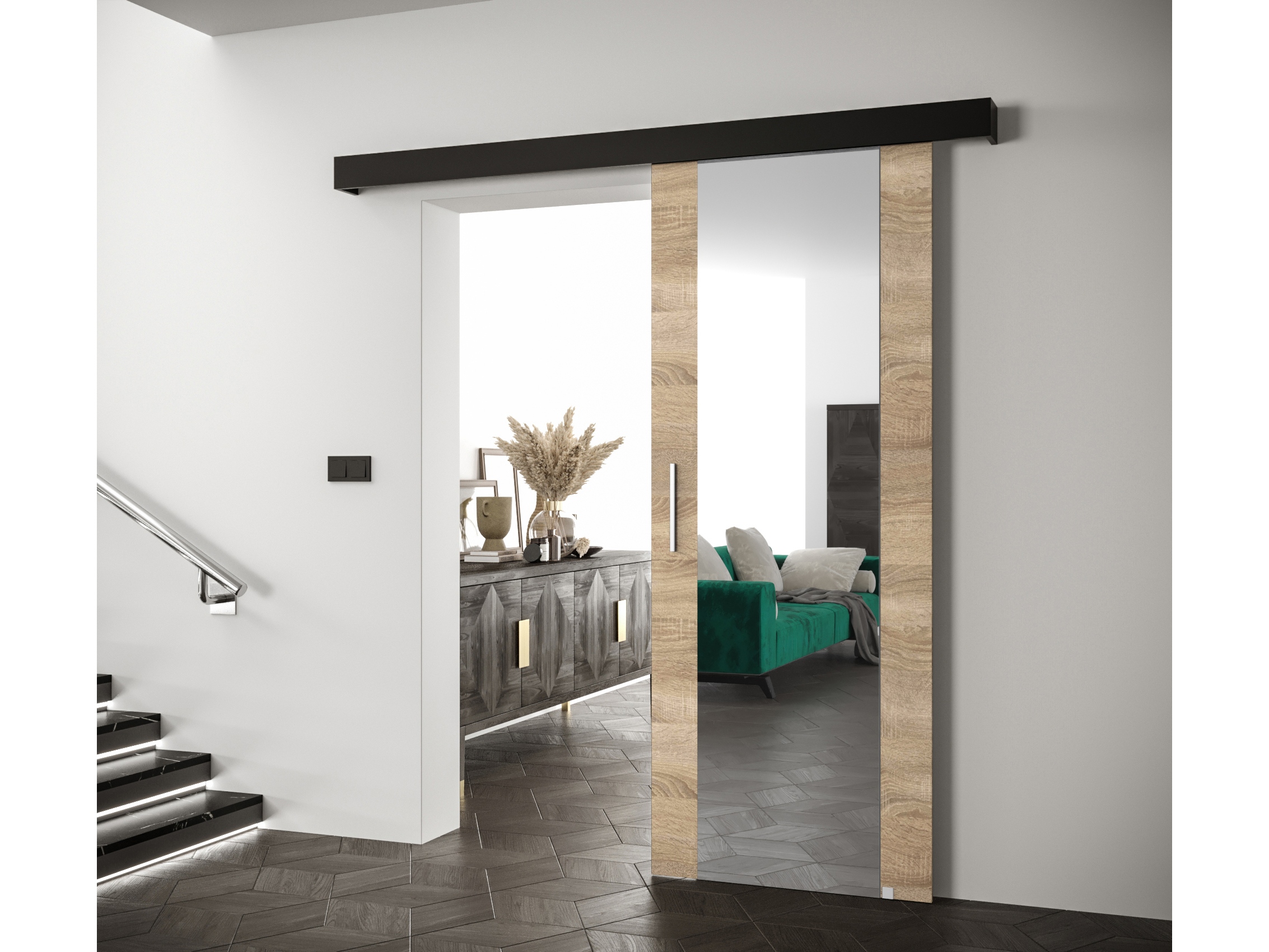 Posuvné dvere 90 cm Sharlene II (dub sonoma + čierna matná + strieborná) (so zrkadlom)